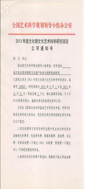2013年12月13日,首届山东省文化创新奖成果报告会在济南举行,会上公布了首届山东省文化创新奖30个获奖项目,德州学院申报的《鲁北民间音乐文化传承创新与实践》在近200项申报项目中脱颖而出,荣获首届山东省文化创新奖。此次评选中全省高校有8所学校申报的项目获奖,德州学院副校长巩建闽教授、音乐学院院长张国庆教授及项目负责人段文教授代表学校参加了颁奖典礼。