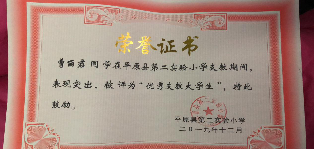 本次实习支教自2019年8月28日正式开始,99名支教学生分别在乐陵、宁津、武城、临邑、平原、庆云的49所中小学进行了为期四个月的实习支教活动。在实习期间同学们以校为家、爱岗敬业,对学生关爱有加,和同事和谐相处,对待工作一丝不苟,充分展示了我院实习生良好的综合素质和扎实的专业基础,受到了当地教育主管部门和支教学校的一致好评,共有68人先后获得优秀支教大学生、最受学生欢迎老师、最美教师、音乐课堂组织标兵、德育工作先进个人等荣誉称号。