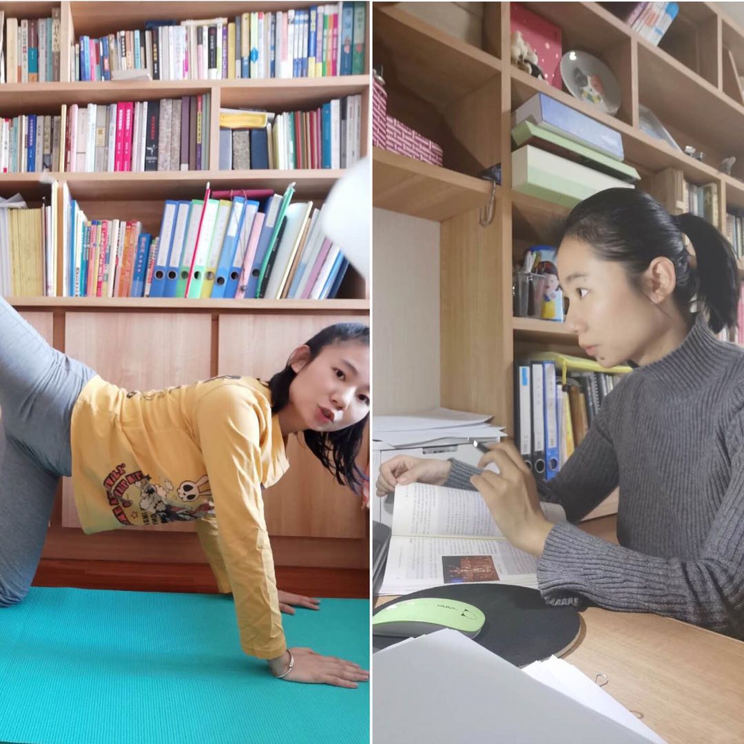 在停课不停学的疫情特殊时期,如何保证学生身体软开度、基本体力、肌肉力量等舞蹈课程要求的身体素质,孙晓丹老师精心设计、煞费苦心。在利用手机运动软件规定学生日常自行训练强度并要求每周周五上传完成截图的同时,督促学生控制体重,利用直播上课软件分年级直播教学,带领学生进行软开度训练以及肌肉力量恢复训练。