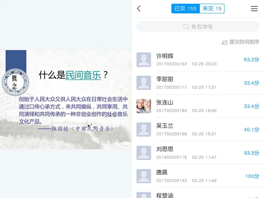 虽然各个平台提供有大量的线上课程资源可供使用,但是不能不加甄别的随意选择,更不能让别人的教学思路牵着鼻子走,而是要紧紧围绕自己制定的教学大纲,辅以优质的教学视频,而且,视频中如出现与你观点相左的地方,还要向学生进行说明。为此,李老师经过反复比较和试听,选定四川音乐学院的曲式课和本校自建的传统音乐课,本校自建传统音乐课现已在智慧树平台面向全国共享,现已有十一所省内外高校选用,选课学生达一千三百余人。无论是自建课程还是别人的课程,李老师在上课前都反复观看,使之与自己的内容做好衔接,为我所用。