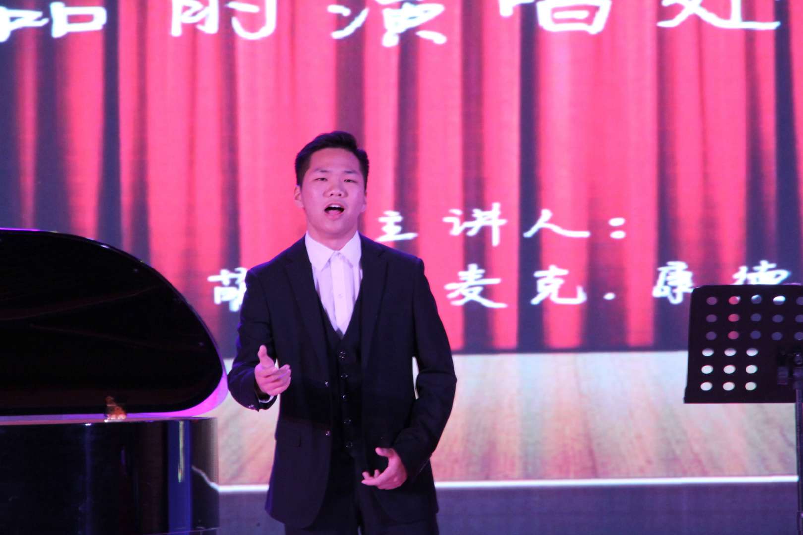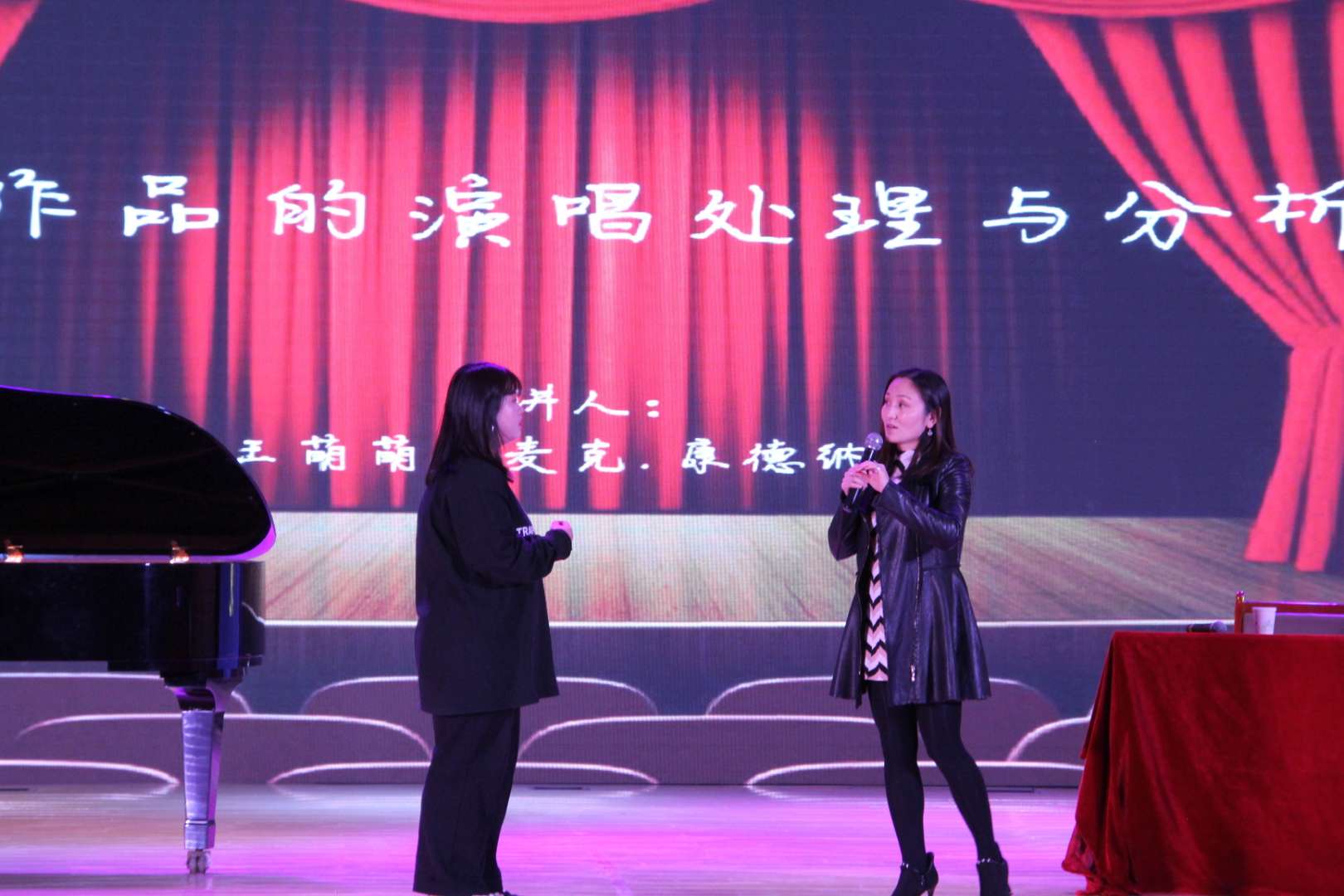 为拓展知识视野,提高学生声乐作品处理能力,10月27日下午,音乐学院邀请旅欧歌唱家,波兰卢布林歌剧院花腔女高音歌唱家王萌萌女士和波兰罗兹音乐学院声乐硕士,波兰卢布林歌剧院男高音歌唱家麦克•康德纳先生在音乐厅为全体师生举办了一场《声乐作品的演唱处理与分析》讲座,音乐学院副院长段文对两位歌唱家做了简要介绍,讲座在全体师生的热烈掌声中拉开帷幕。