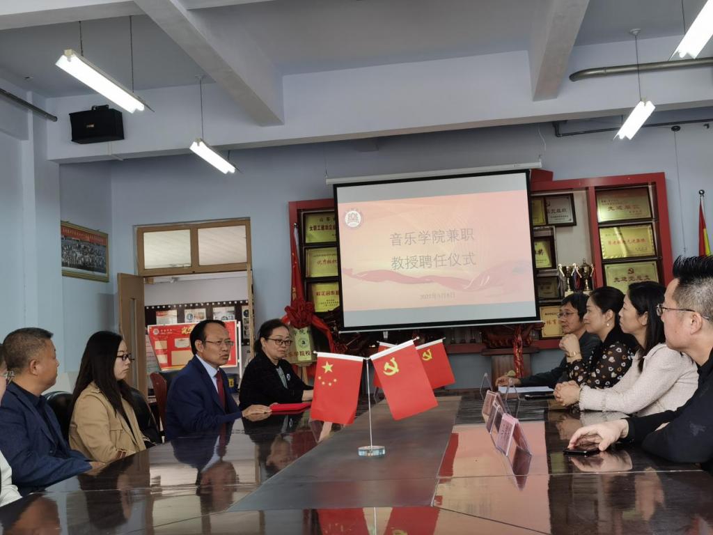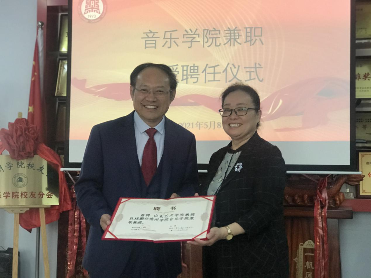 此次聘任仪式由副院长段文主持,并宣读德州学院关于聘孔祥勇任我院兼职教授的决定,随后田屹院长为孔祥勇教授颁发聘书,最后孔祥勇教授针对德州学院音乐建设工作的规划以及如何提升学生素养水平等音乐专业问题和我院教师深入积极的探索和交流。