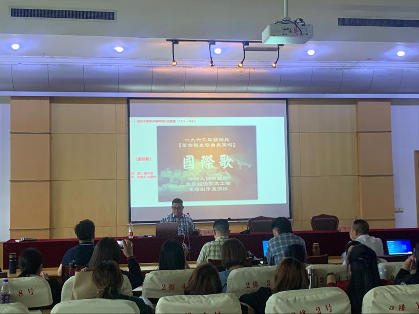5月12日下午,音乐学院在厚德楼四楼报告厅举办“建党百年中国红色歌曲的历史和审美”主题讲座,此次讲座的特邀教授是湖南师范大学“潇湘学者”特聘教授、博士生导师,浙江师范大学“双龙学者”特聘教授、博士生导师:杨和平教授。讲座由音乐学院院长田屹主持,科研处副处长吕志轩、副院长段文、德州市中小学音乐骨干教师以及我院部分师生参加。