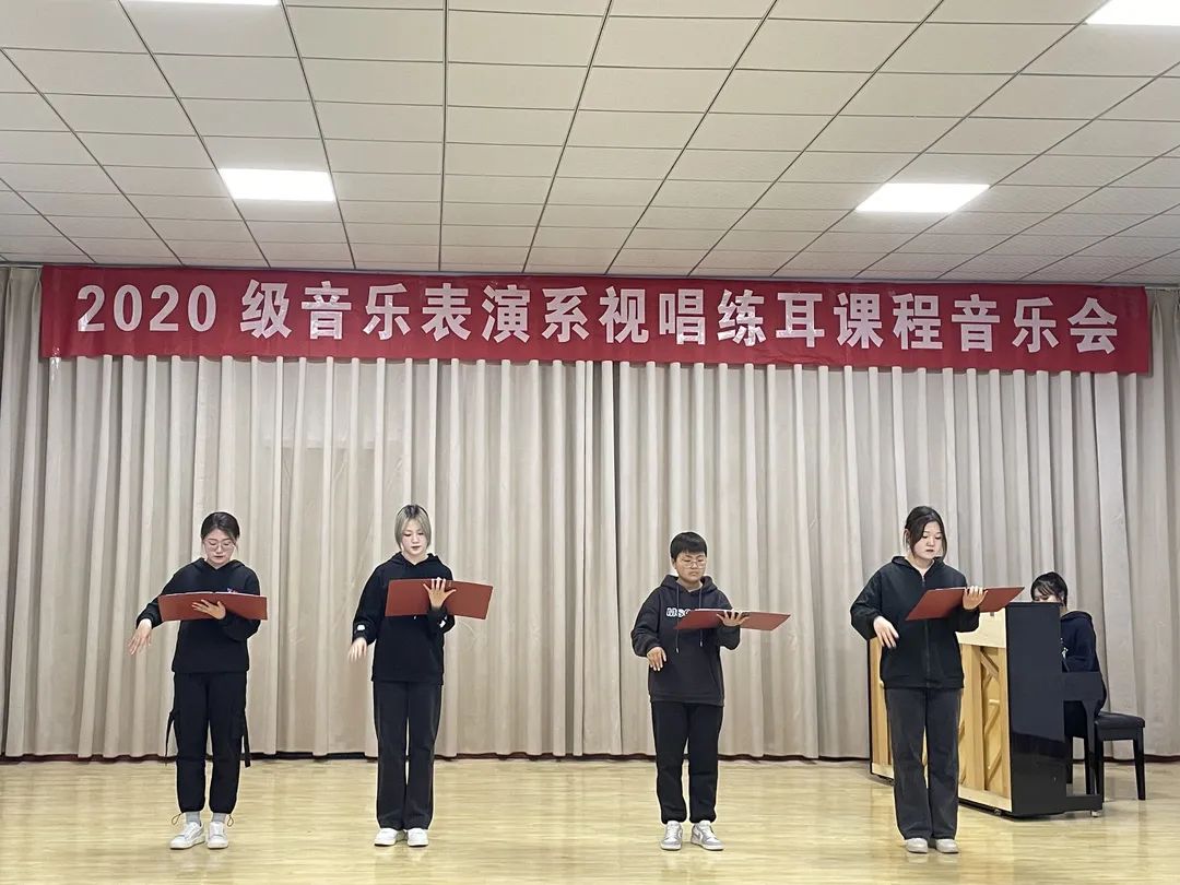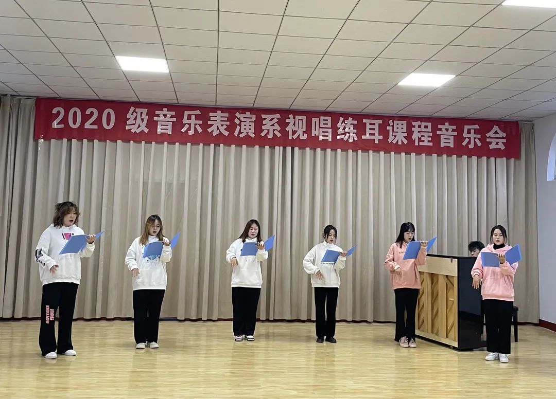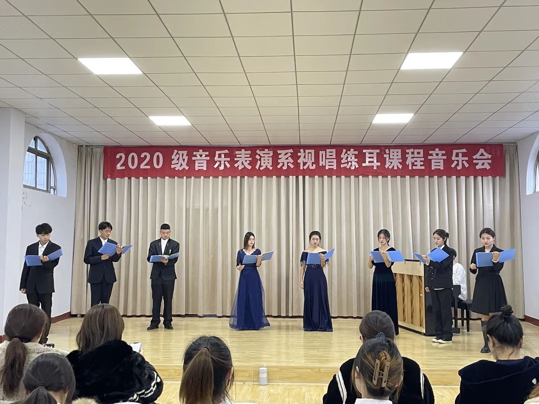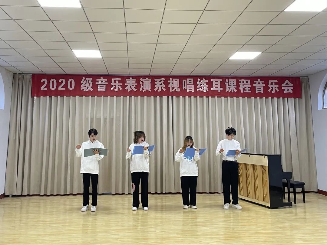 12月17日下午,2020级音乐表演专业视唱练耳课程音乐会在音乐学院排练厅成功举办。本场音乐会由任课教师白云全程指导,共有17首视唱作品,融合了弹唱、多声部视唱、多声部节奏等音乐表现形式,音乐学院师生共同观看。
