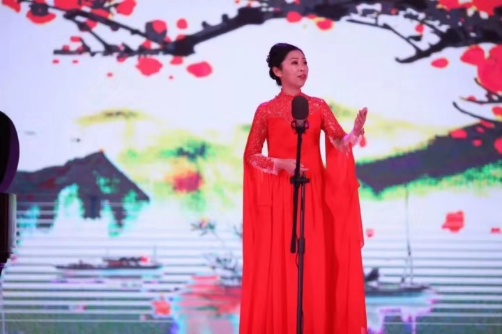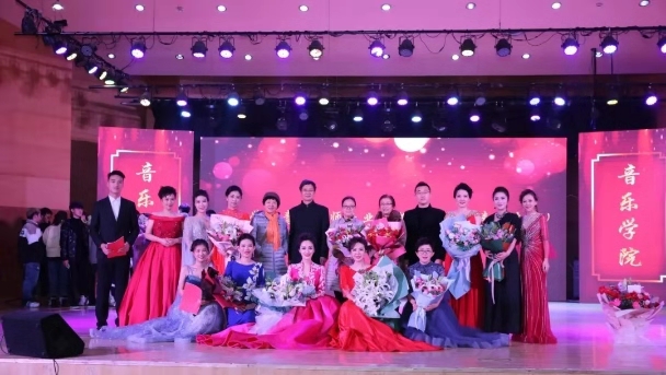 音乐学院声乐教师团队秉承“学高为师,身正为范”的职业理念,为了更好地践行音乐学院培养学生“既能上讲台,又能上舞台;既当得了教师,又当得了演员”的人才培养目标,老师们对自身严格要求,有规划地实践着自身的舞台展演。音乐会上半场为艺术歌曲,让观众感受到音乐艺术的独特魅力;下半场为爱国歌曲,不忘初心,讴歌新时代。由杨瑞老师演唱的选自歌剧《玛侬.莱斯科》中的咏叹调《挂满了柔软幕帐》和一首深情的《我爱你中国》均是很考验专业技术的作品,在语言咬字,气息运用、感情表达方面对演唱者都有着很高的要求。薛莲老师演唱的《贵妃醉酒》以唐代“贵妃醉酒”的历史故事为题材,结合京剧唱腔的突出特征,把贵妃的复杂心情展现的淋漓尽致,是中国民族声乐的一个极大拓展,巅峰之作!与杨光伟老师共同为大家演绎的《春天的故事》更是高昂又深情,赢得观众一致好评。杨光伟老师《古老的歌》亦是在演唱时运用独特的声音品质、非凡的演唱技巧和饱满的演唱激情,赋予了这首歌曲活的灵魂和经典韵味。杜乡老师演唱的艺术歌曲《我住长江头》和爱国歌曲《江山》,每一句抒情的旋律都体现出创作时深刻的人生和情感经历,流露出内心世界对明天的美好向往,引人回味无穷。刘洋老师的《知己红颜》和《等着我,亲爱的人》深受学生们的喜爱,其中《等着我,亲爱的人》邀请了音乐学院优秀毕业生张振鹏,师生两人深情对唱,曲调旋律优美、情深意切。梁娜老师演唱的《蓝色爱情海》和《不忘初心》,歌词富有诗意,音乐旋律优美流畅,充分体现了诗的韵律与音乐旋律的和谐统一,具有很高的艺术魅力。李琛老师演唱的《秋水长天》和《我的深情为你守候》起于舒缓而悠扬的曲调,后转为激昂有力,有进行曲一般的力度,描绘战事的激烈,最后又转为高亢而抒情,完成了主题的升华和对歌曲内涵精神的讴歌。吴丽老师演唱的《我爱这土地》和《致祖国》作品在旋律上充满歌唱性,必要的时候采用朗诵性音调,形成了宣叙性与歌唱性,抒情性与戏剧性的有机结合,创造性地舒展了歌词的内涵,深化了作品的主题。《我和我的祖国》把整场演出推向高潮,激动人心的音乐倾泻而出,现场观众对教师团队的精彩表现报以经久不息的掌声和热烈的欢呼声。