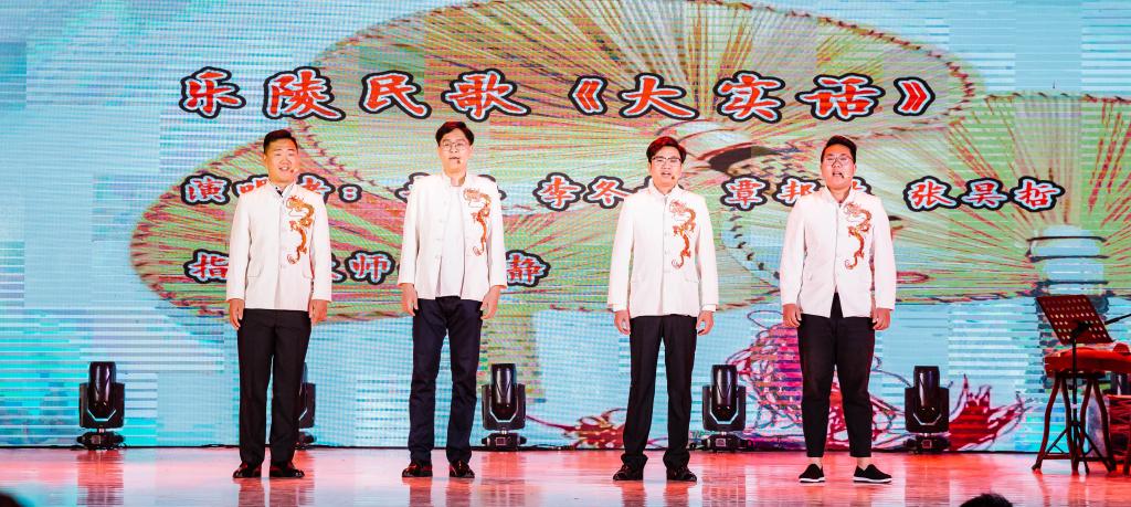 音乐会在临邑民歌《秧歌调》婉转的旋律中拉开帷幕,生动地表演出人们风趣的生活场景。夏津民歌《鸽哨》演唱者用动听的歌声,为音乐会增添了一抹亮色。随后的《插花鞋》等德州民歌婉转的旋律与多种乐器的完美融合,让现场观众无不为之动容。最后,一曲由德州市文化馆推送的根据德州运河号子改变的民歌《中国船号震天地》更是把音乐会气氛推向了高潮。