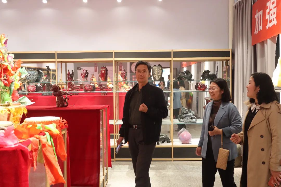 我院师生参观了非遗文化展厅。展厅内陈列着一勾勾戏曲的传统戏服、手工制作的传统乐器,以及非遗烙画葫芦作品和德平大鼓等展品。每一件展品都承载着丰富的历史信息和文化底蕴。