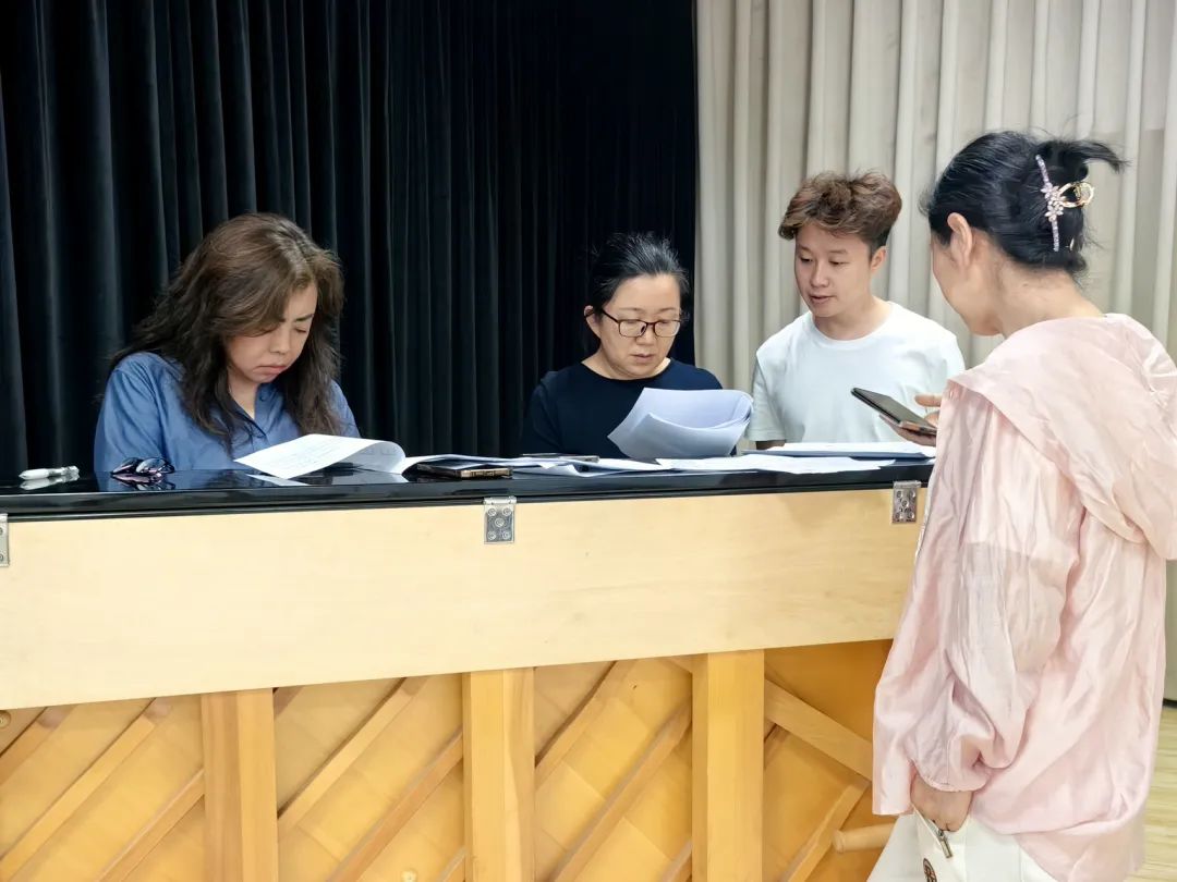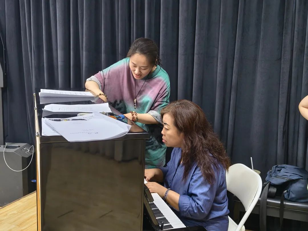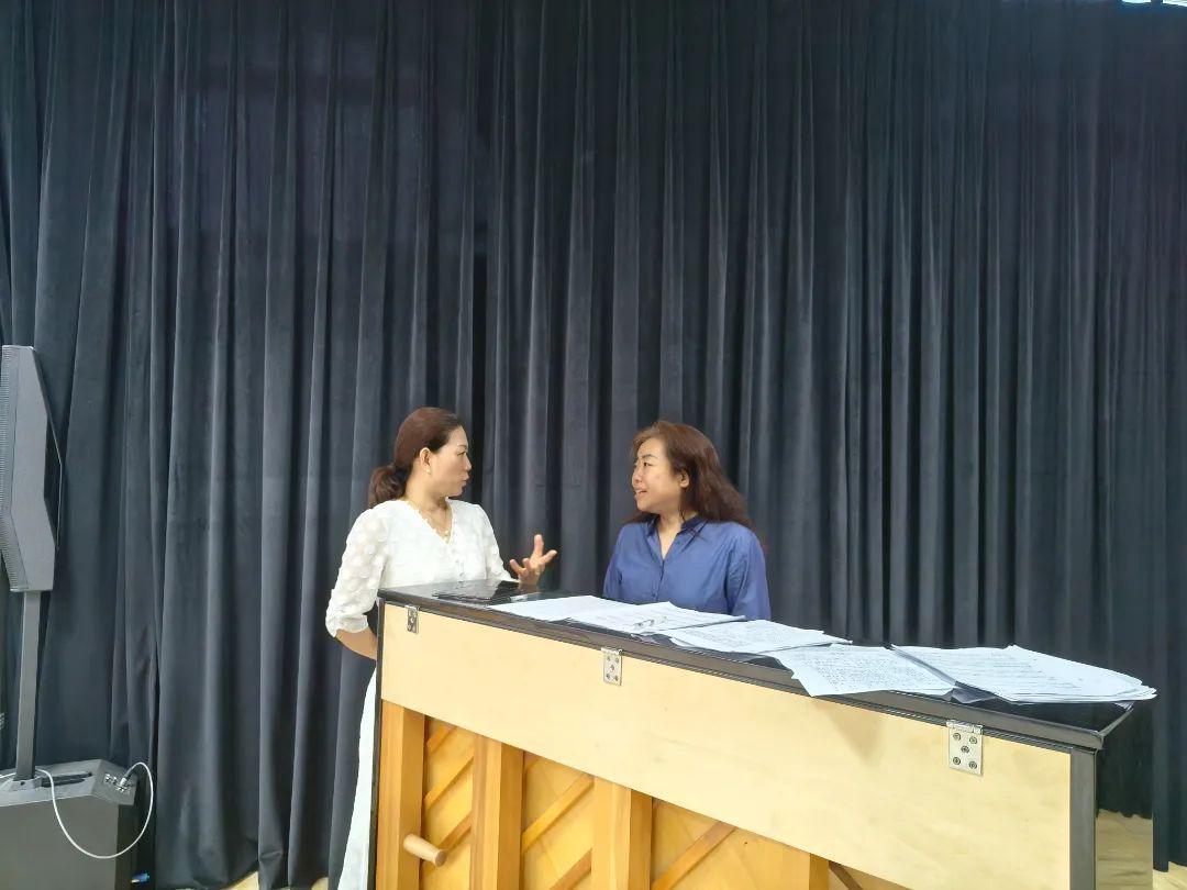 在现场,王硌教授对各位老师进行“一对一”的悉心指导和针对性点评,指出在演唱中存在的问题并给予指导性建议。王教授对歌剧排练具有丰富的经验,从作词、谱曲与歌曲伴奏方面对《西征组歌》提出了专业性整改方案,并结合历史背景与老师们进行了深度交流,让歌曲更加细致化,也通过现场示范等方式使老师们更加深刻地认识到声乐演唱的精髓,对于进一步提高教学水平和音乐表现力有了更深层次的理解。