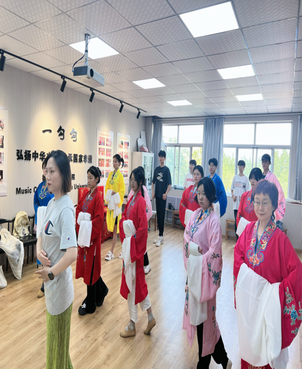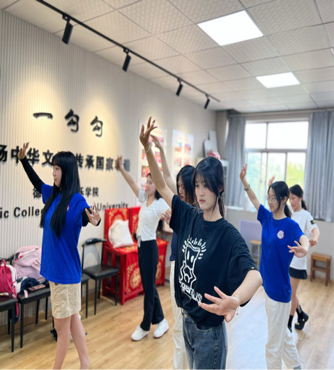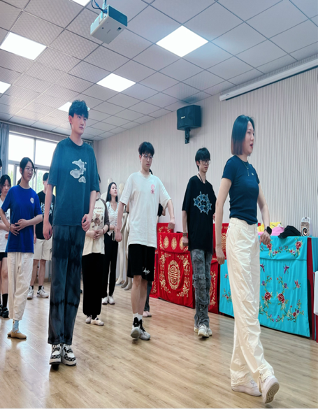 在吕老师的引领下,同学们的热情被点燃,纷纷投入到学习中。他们认真练习每一个动作,尽管遇到挑战,但从不气馁。在吕老师和学院老师的指导下,同学们的动作日益规范流畅,展现出了戏曲表演的独特魅力。