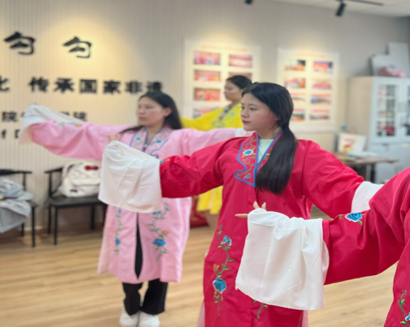 在吕老师的悉心指导下,同学们不仅学习了开肩、立腰、顺风旗、走圆场等基础动作,还逐渐掌握了戏曲表演中的兰花指、兰花掌以及水袖等动作要领。每一次的挥袖、每一次的转身,都让同学们更加深入地领略了戏曲的韵味和精髓。