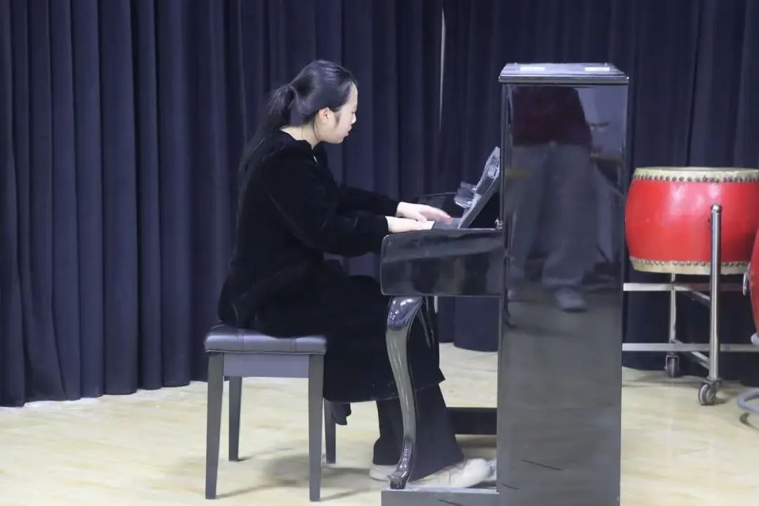 季炫辰同学的钢琴独奏《侏儒进行曲》如行云流水,指尖在琴键上轻快跳跃,流淌出的音符清脆悦耳。