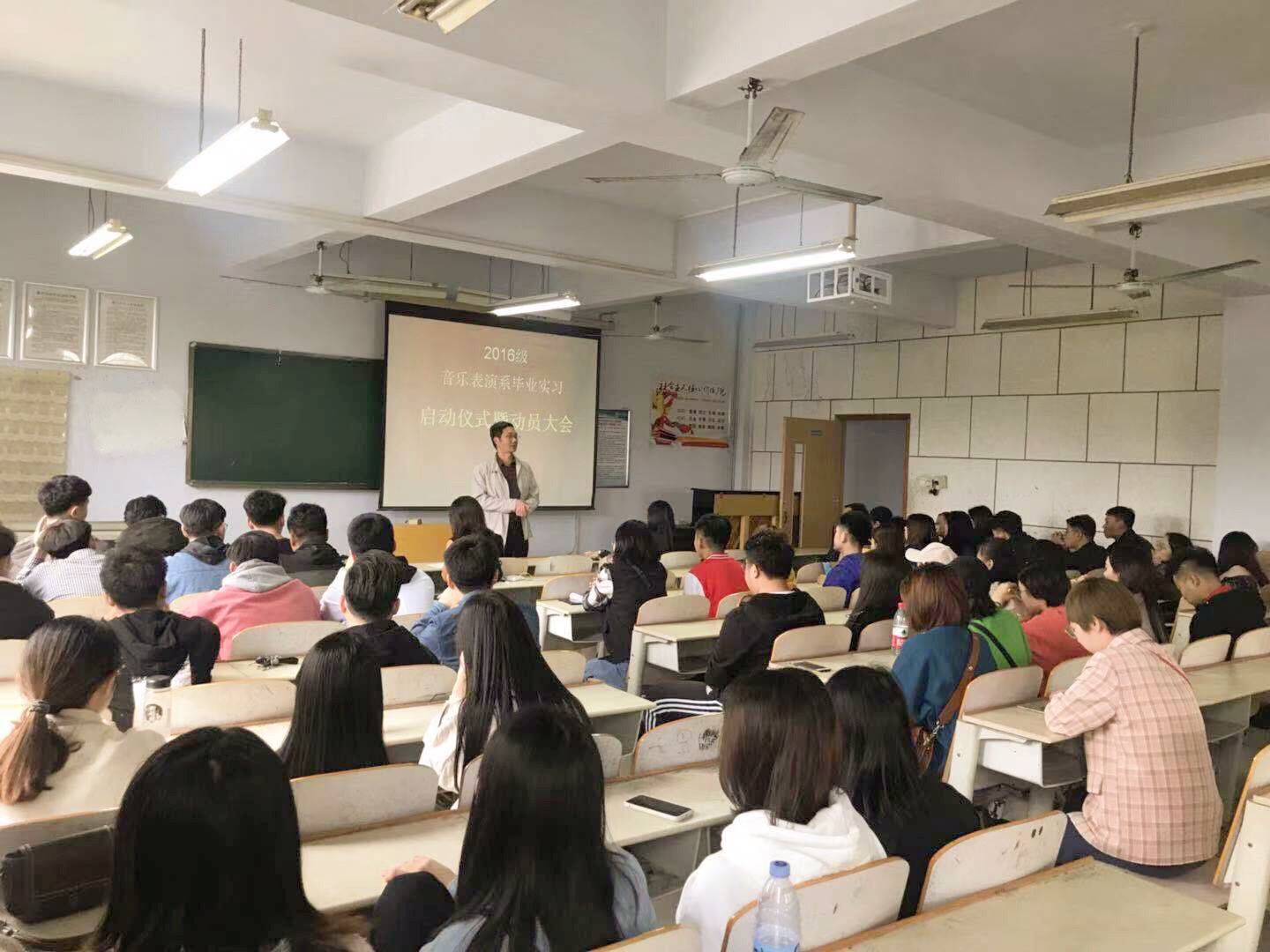 10月10日下午,音乐学院召开2016级音乐表演专业“毕业实习动员大会”,音乐学院副院长段文、音乐表演系主任宫莉以及所有实习指导教师参加了动员大会。