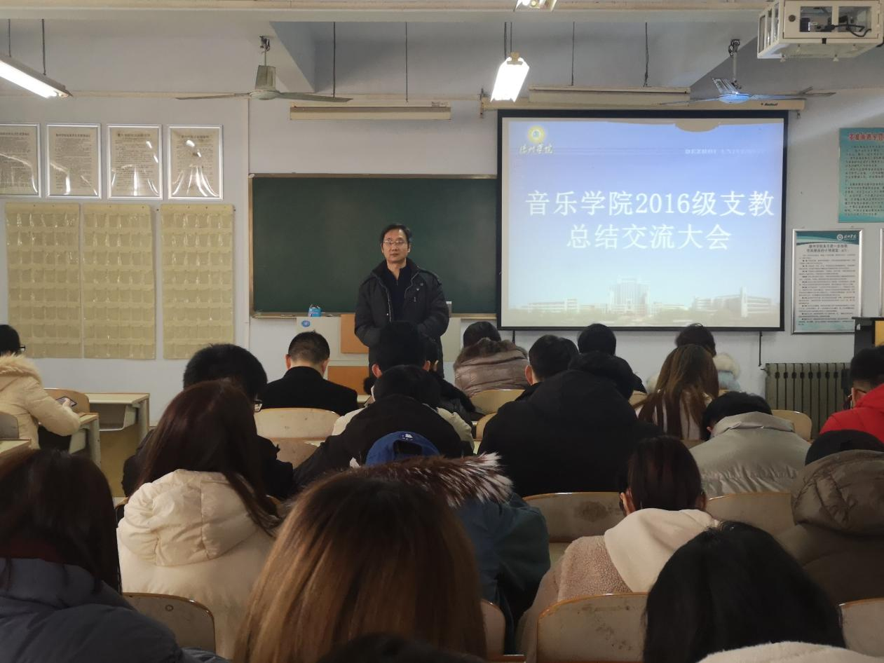 2019年12月29日上午,音乐学院举行了2016级师范生实习支教总结交流大会。音乐学院相关领导、指导教师及2016级全体支教生参加了此次大会。
