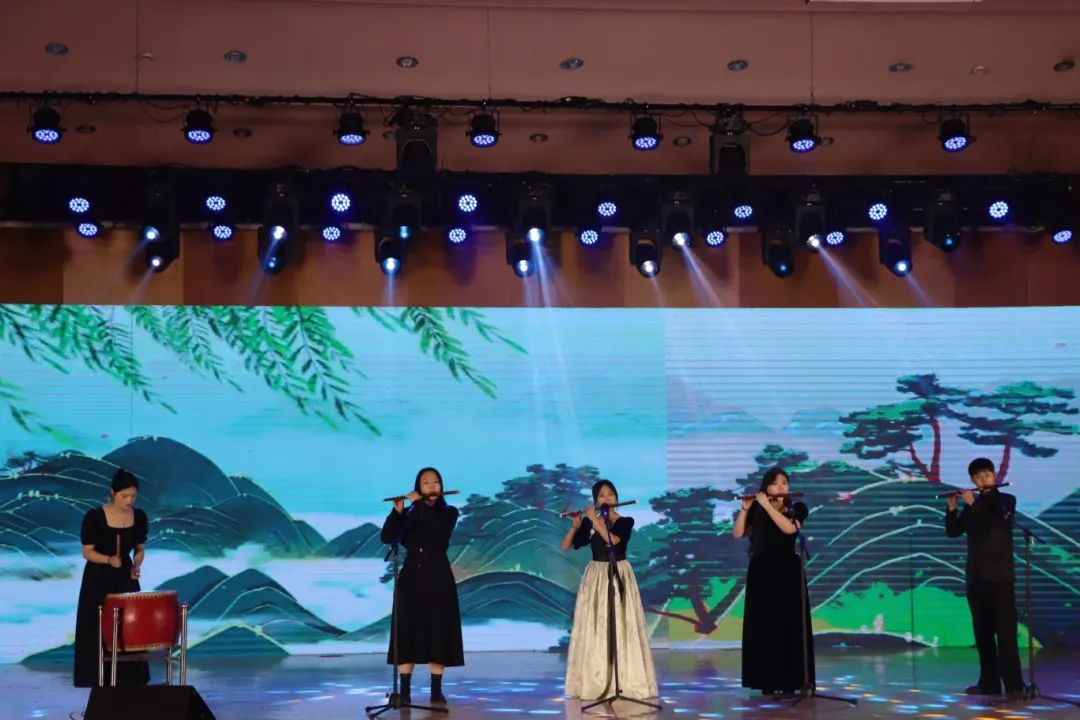 器乐合奏《上春山》清越的竹笛与鼓乐齐鸣,乐器对话间,春山叠翠的意境跃然眼前。男生合唱《忘记时间》则用高昂的曲调诠释悠悠岁月,青春的热烈与时光易逝的慨叹形成张力。