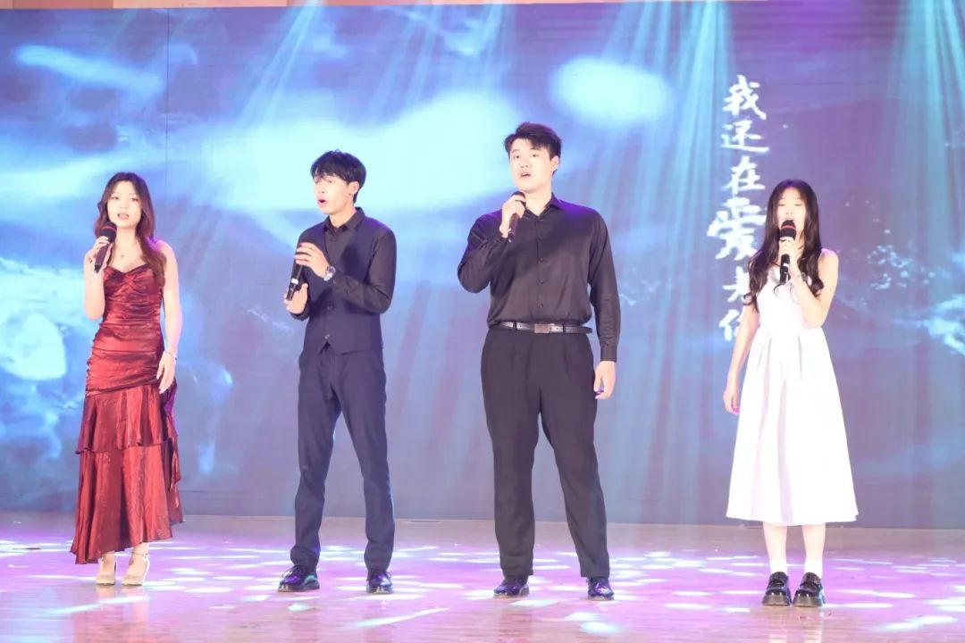 舞台灯光渐暗,重唱《因为爱情》如缠绕的藤蔓交织攀升,男声的深沉与女声的婉转在“因为爱情,不会轻易悲伤”的歌词中碰撞。演唱者相视而笑的瞬间,恍若将观众拉回青春里最柔软的角落。 女生独唱《我怎样去爱你》则以克制的深情叩击心扉。一袭白裙的演唱者立于舞台中央,声线如月光下的潮汐,渐强的副歌部分,共鸣如海浪层层堆叠,最高音处骤然收束为气声,未落的泪光比呐喊更灼人。男生独唱《拆穿》以爆发力撕开静谧。追光灯束如利剑刺破黑暗,歌者攥紧话筒,沙哑的高音裹挟着“谁会来拆穿”嘶吼直抵人心。钢琴伴奏如雨声敲击,轻重缓急,托举着歌声高潮迭起。