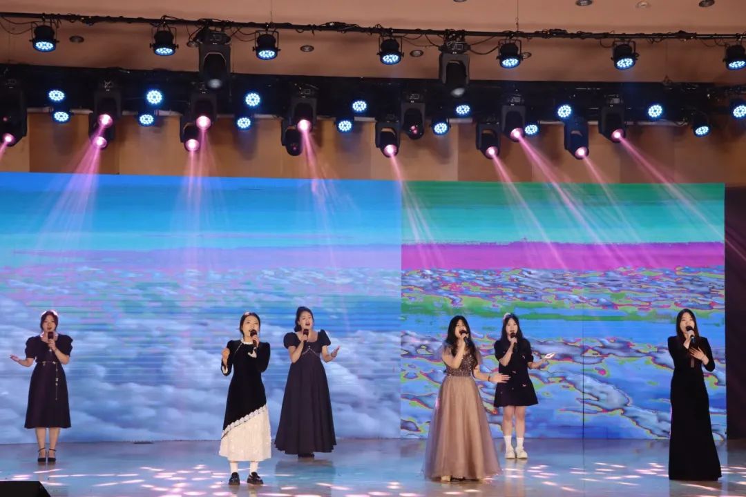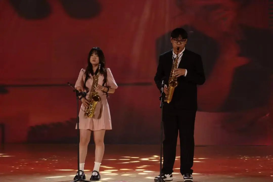 音乐会在男女合唱《如果有来生》中缓缓拉开帷幕。清澈的歌声如溪流淌过舞台,“我们去大草原的湖边,等候鸟飞回来”的歌词带着青春特有的憧憬遐想,瞬间点亮观众的眼眸。萨克斯重奏《苏州河》紧随其后,爵士乐的自由随性浸润着江南水乡的柔情,铜管乐器的金属质感与旋律的缠绵交织,为传统曲调注入新鲜生命力。