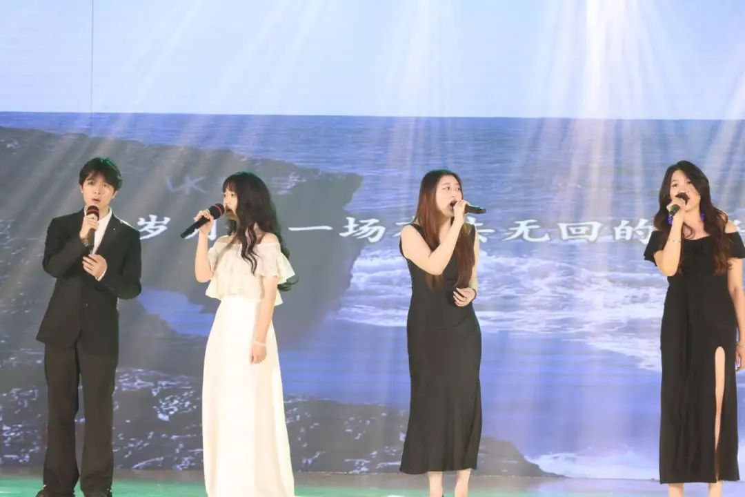 随着演出进入尾声,男生独唱《等你归来》将蒙古长调的苍茫与流行旋律相融,呼麦声与电子音效交织成对母校的深情回望。《岁月神偷》的旋律响起,“岁月是一场有去无回的旅行”的歌词伴随渐暗的灯光流淌,许多观众轻声跟唱,离别的愁绪已悄然弥漫。