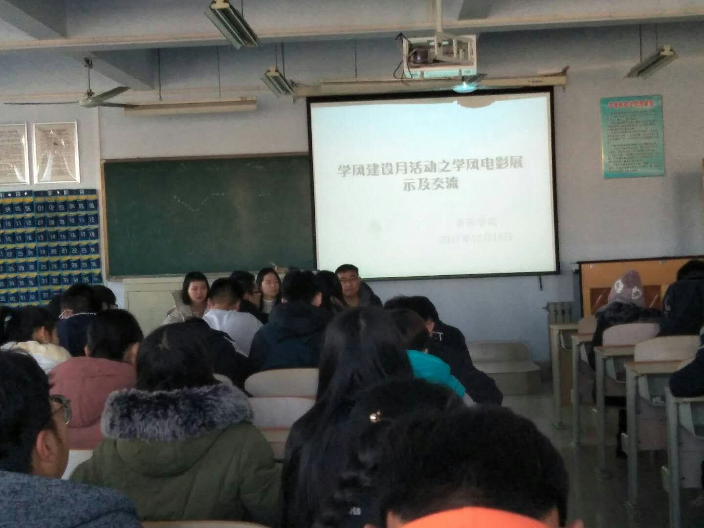 2017年12月18日下午,音乐学院在二楼合堂开展学风建设月活动之学风电影展示及交流活动,2017级同学参加。
