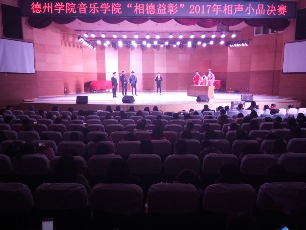 为丰富大学生活,德州学院音乐学院举行“相德益彰”相声小品大赛,并于11月23号晚在南校音乐厅举行大赛决赛,辅导员贺昱、史璇出席本次活动,各学院学生参加。
