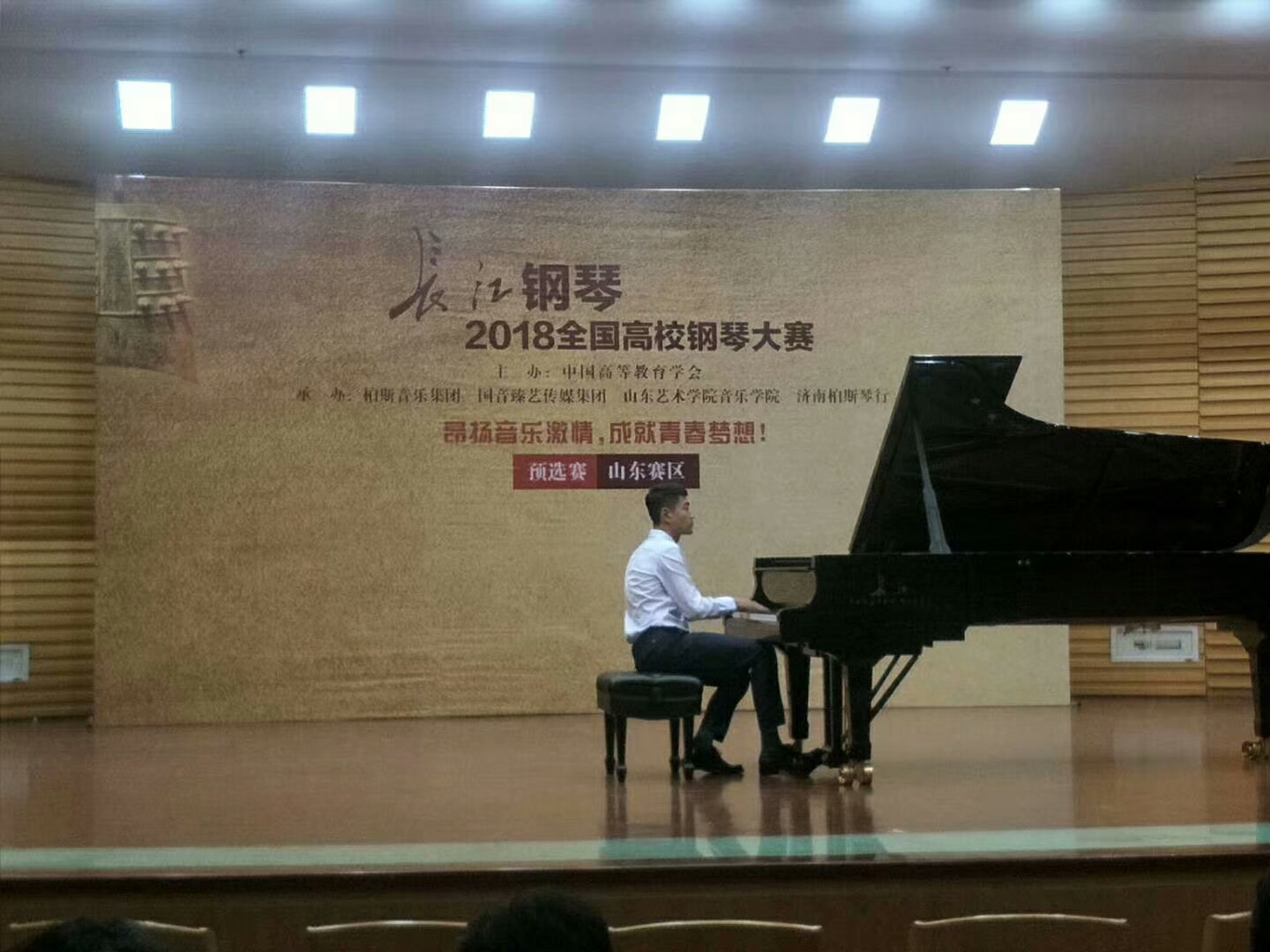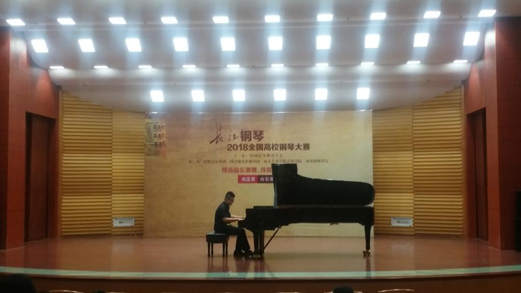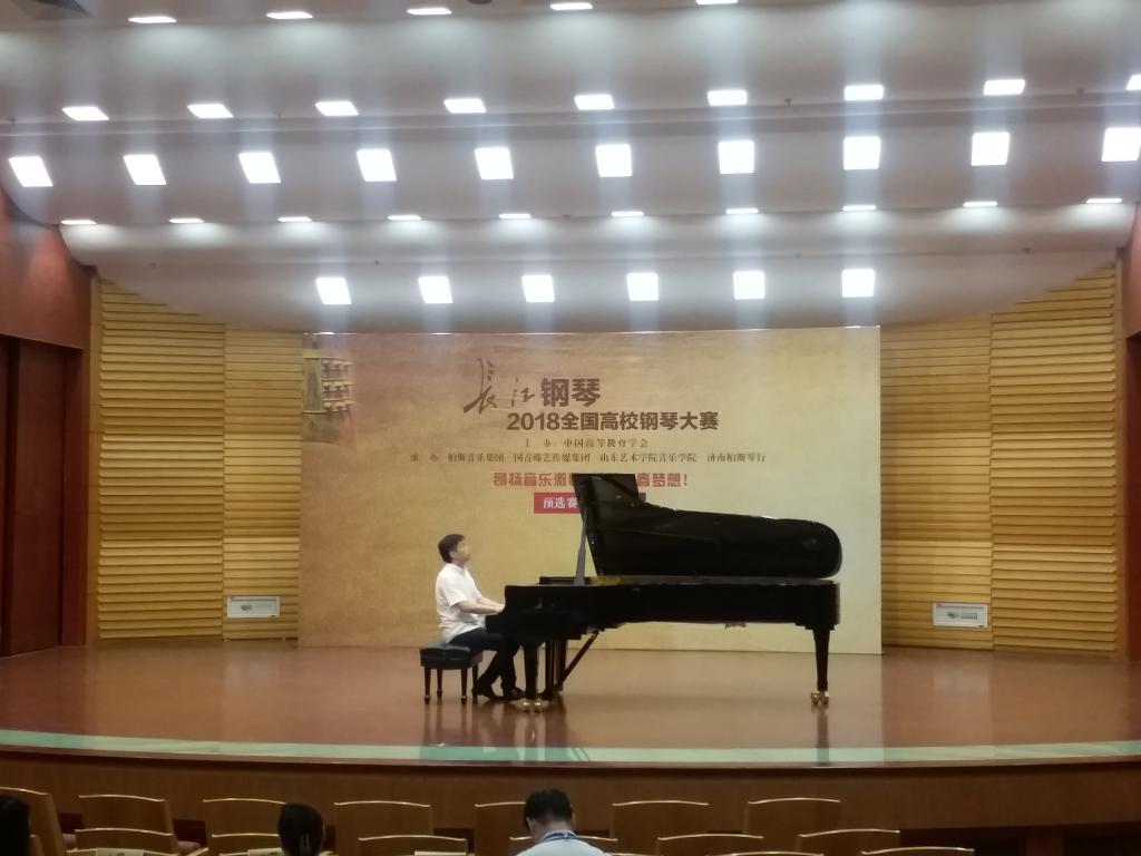 7月7日,由中国高等教育学会主办的“长江钢琴”2018全国高校钢琴大赛在位于省会济南的山东艺术学院音乐厅举行。来自山东、天津、江苏、吉林、湖北五省市的近百名优秀钢琴专业师生参加了比赛。比赛分为专业教师组、高校学生组、高校业余组和四手联弹及双钢琴组,每组分设一、二、三等奖、优秀奖。其中,专业教师组只设一等奖1名,二等奖2名,三等奖3名。经过一天激烈的角逐,德州学院音乐学院的武凌、任陆分获专业教师组三等奖,刘蕴浩获得高校学生组优秀奖。