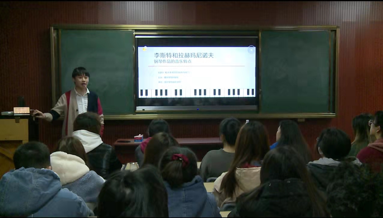 12月3日下午,由德州学院科研处主办、德州学院音乐学院承办的李斯特和拉赫玛尼诺夫钢琴作品的音乐特点讲座在音乐厅与音乐学院102教室同时举行。此次讲座由马石老师主持,钢琴专业师生参与线上讲座。