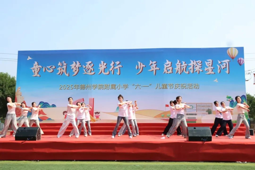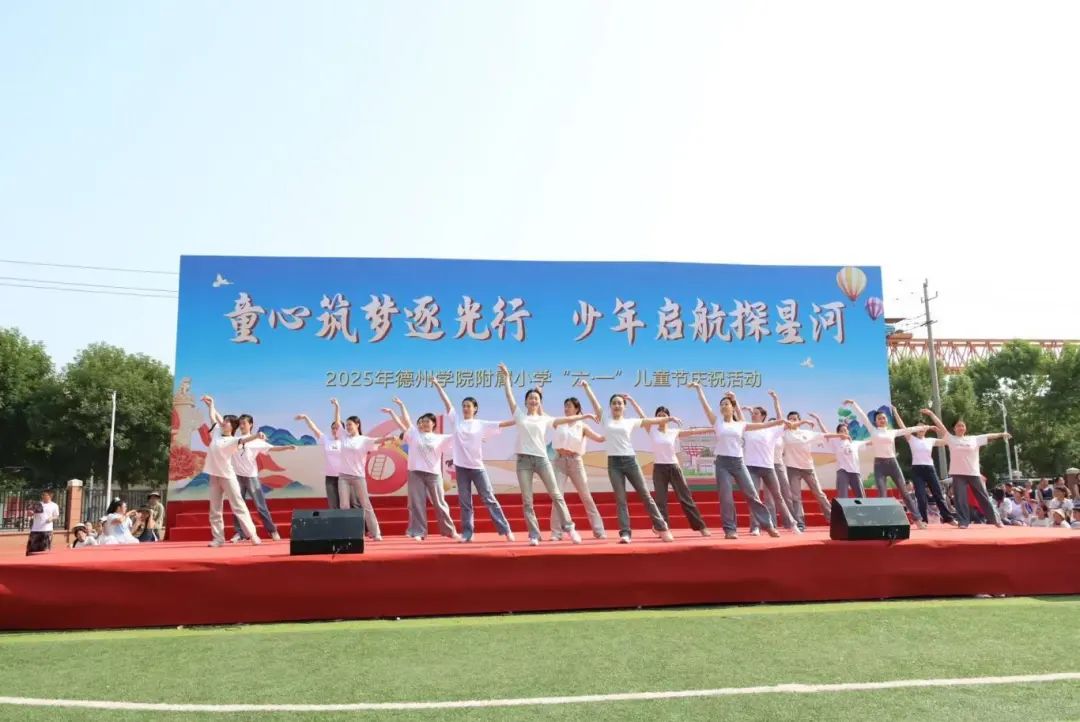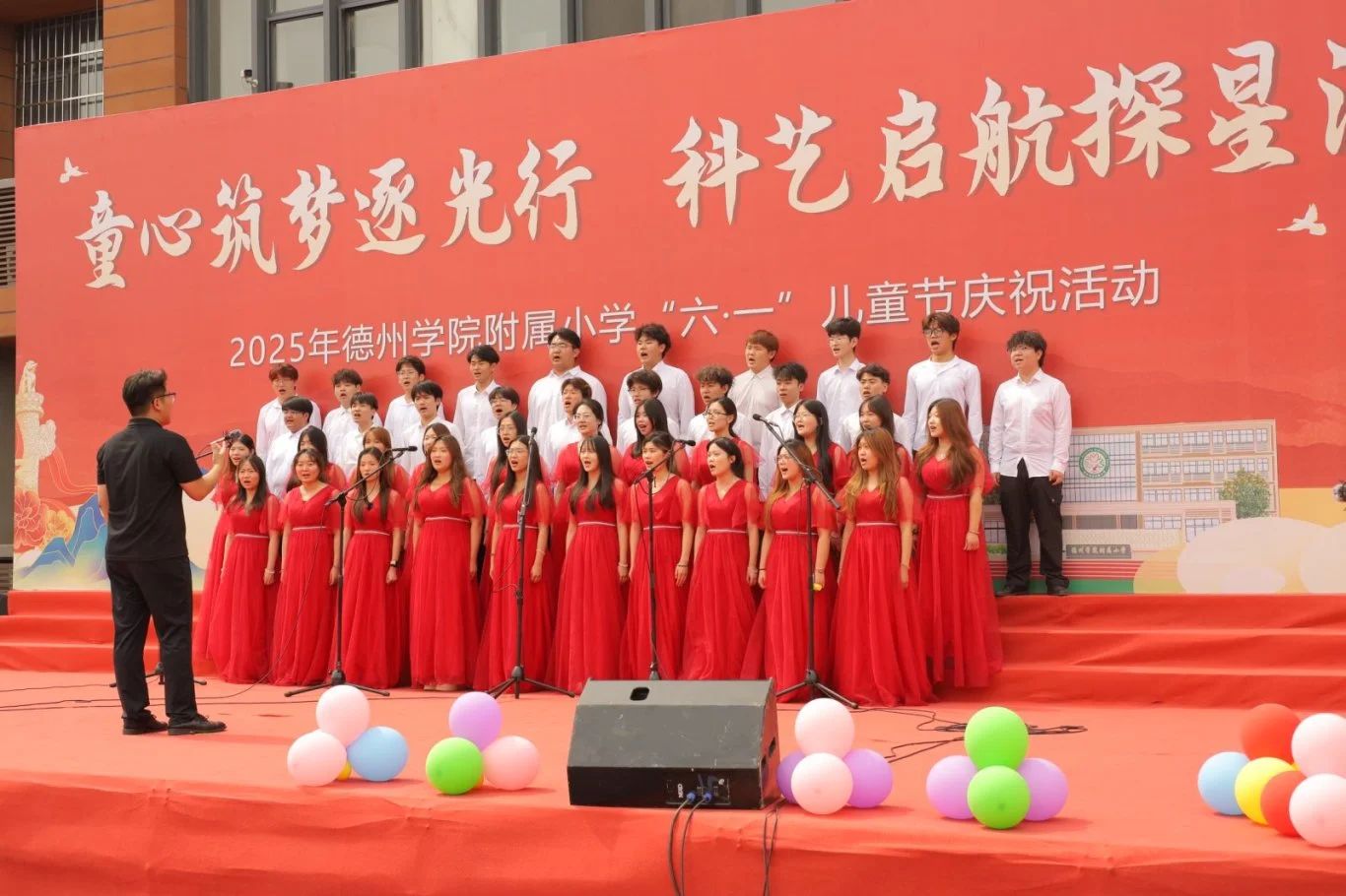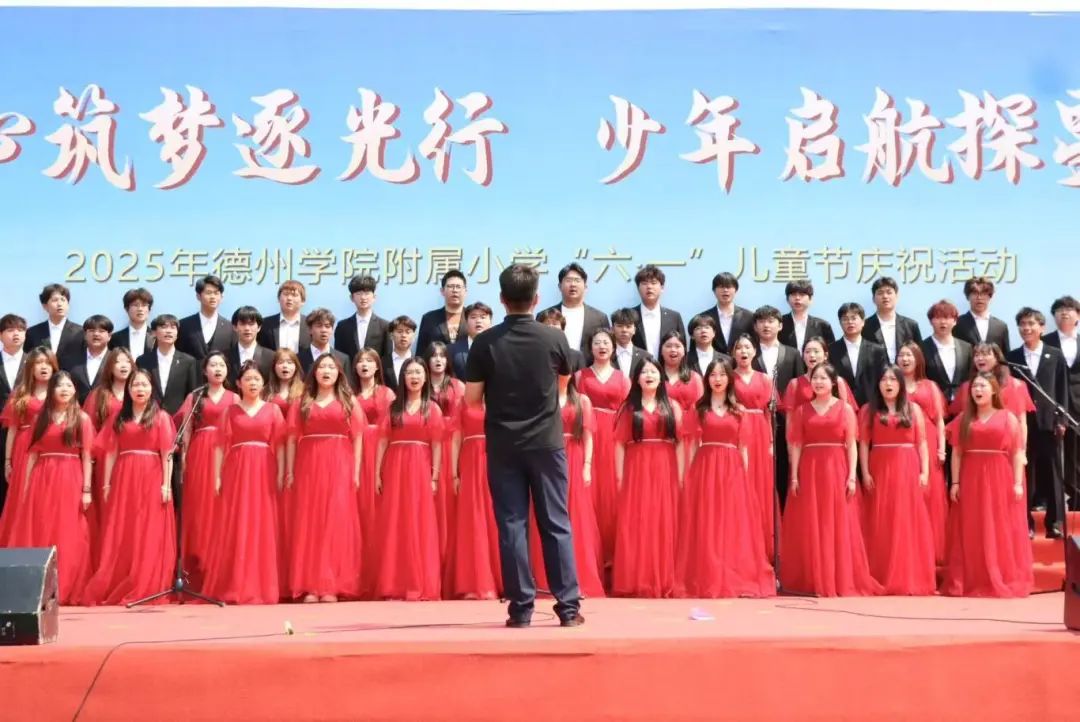 5月29日,在德州学院附属小学北校区,音乐学院舞蹈系以舞蹈《万疆》拉开活动序幕,舞者以极具张力的肢体语言诠释家国情怀,瞬间激活全场热情。舞蹈《青春有你》,用舞蹈诠释着青春的美好与友谊的珍贵。由音乐学院学子带来的流行串烧《听妈妈的话》《就是哪吒》,将流行音乐的活力与童真梦想巧妙融合。压轴环节,音乐学院“德之声”合唱团与附小师生演绎《世界赠予我的》,多声部和声如星光洒落,将艺术传递至每个角落。