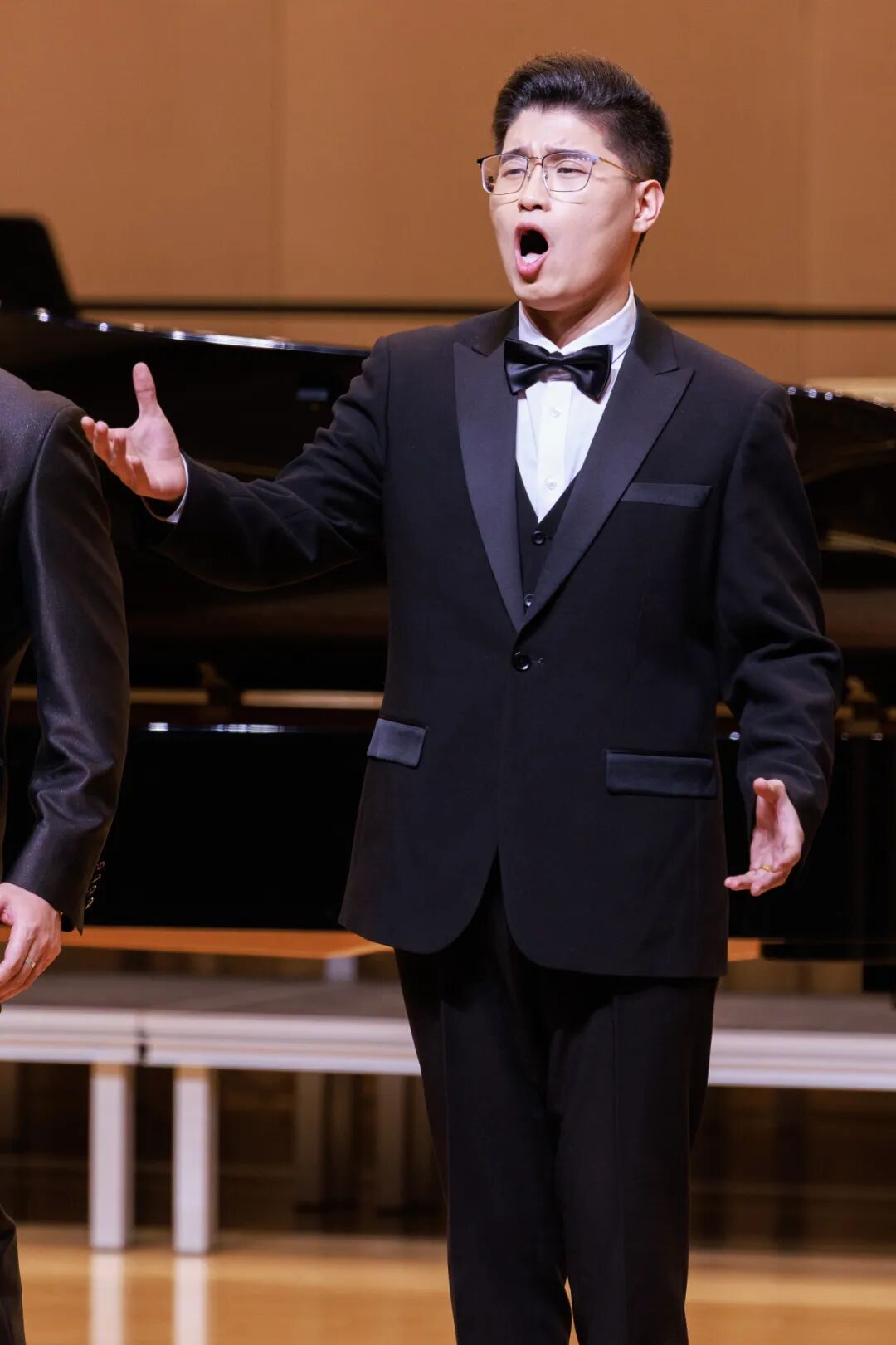 音乐学院青年教师吴振飞博士参与十大男高音合唱《啊,我的太阳 》和《今夜无人入睡》的表演,其嘹亮且富有感染力的演唱,为这首经典曲目赋予了新的艺术表达。