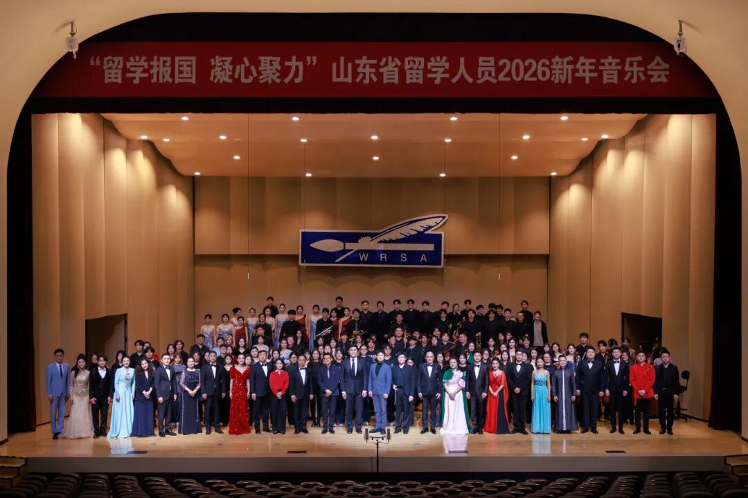 2025年12月27日晚,由省欧美同学会文化艺术委员会、山东艺术学院欧美同学会联合承办,山东省欧美同学会主办的“留学报国 凝心聚力”山东省留学人员2026新年音乐会在济南剧院盛大举行。欧美同学会(中国留学人员联谊会)副会长、省政协副主席、省欧美同学会会长程林致辞,省欧美同学会副会长李琥、龚文东、王浩、祝恩元、张祝秀、王克芳、马晓丽,以及省直统战系统有关领导出席音乐会。音乐学院副院长徐琦和青年教师吴振飞博士分别受邀参加音乐会演出。