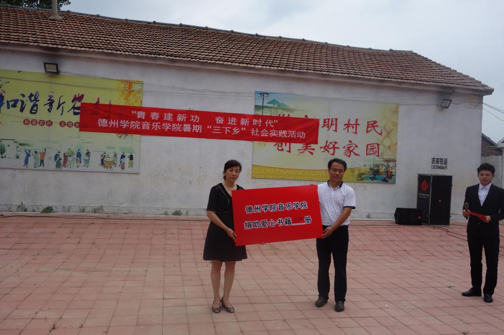本次暑期“三下乡”社会实践活动包括文艺汇演、书籍捐赠、教育调研三个环节,志愿学生分两个小组同时进行。演出的节目紧扣主题、类型丰富,有民歌、竹笛重奏、小提琴独奏、快书、双人舞、诗朗诵等。志愿者们精湛的表演和扎实的专业基本功赢得了在场观众的热烈掌声。演出中间,举办了儿童书籍捐赠仪式,志愿者们代表音乐学院全体师生捐赠了110册儿童书籍,用以助力乡村教育。 与此同时,志愿服务小组在街道和村里进行了以“乡村小学音乐现状”为主题的调研活动,为今后开展专项支教对接活动打下基础。