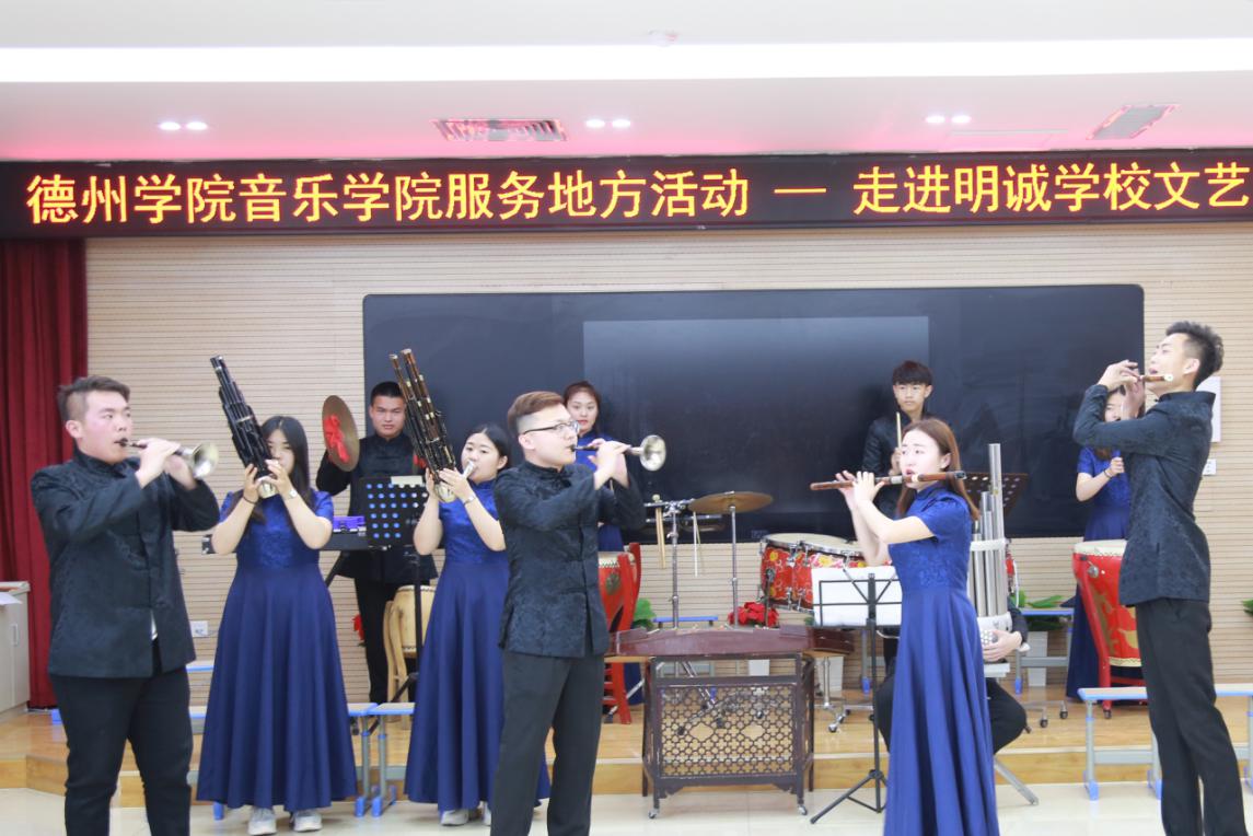 5月10日,音乐学院服务地方志愿者们走进明城学校,为学校师生奉献了一台精彩的文艺演出。