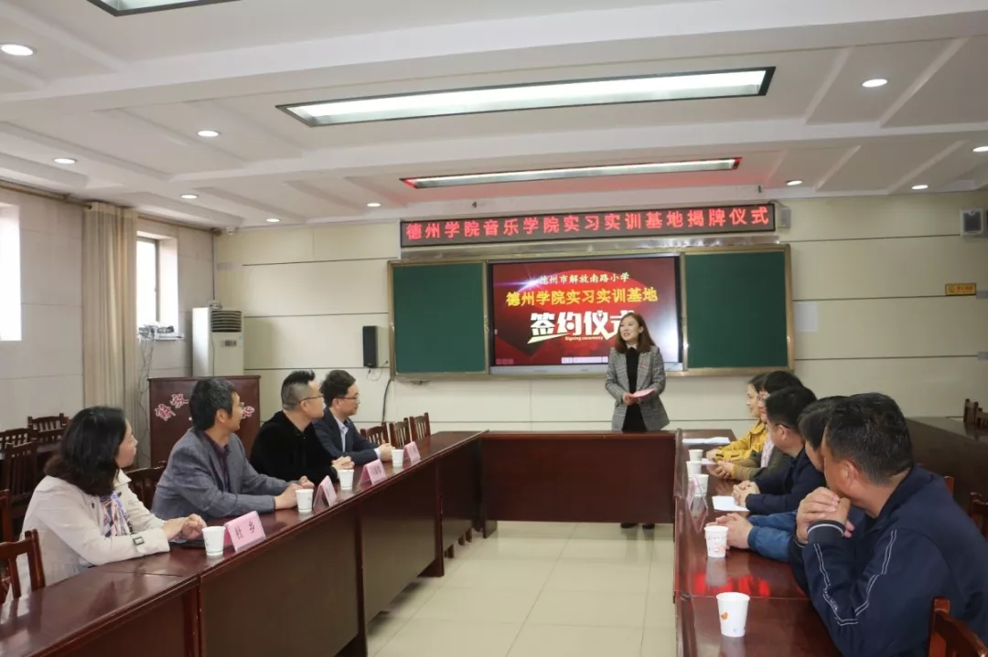 4月16日,音乐学院赴解放南路小学举行“德州学院实习实训基地”挂牌仪式。音乐学院副院长段文、音乐教学实践中心主任马锡骞、音乐学系声乐教研室主任杜乡、音乐教学实践教研室主任徐琦及解放南路小学校长康希福等领导教师参加活动。