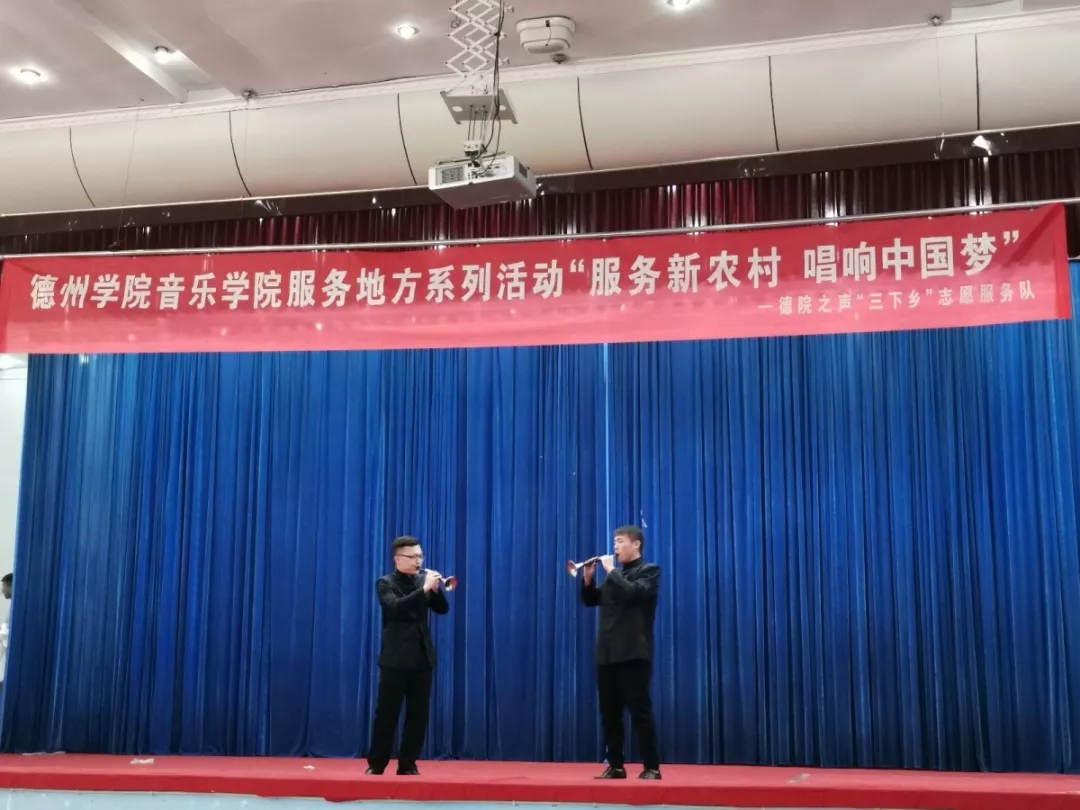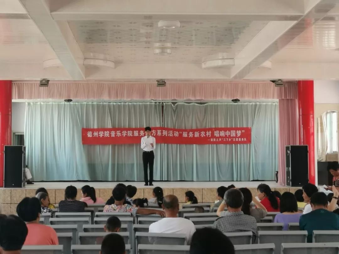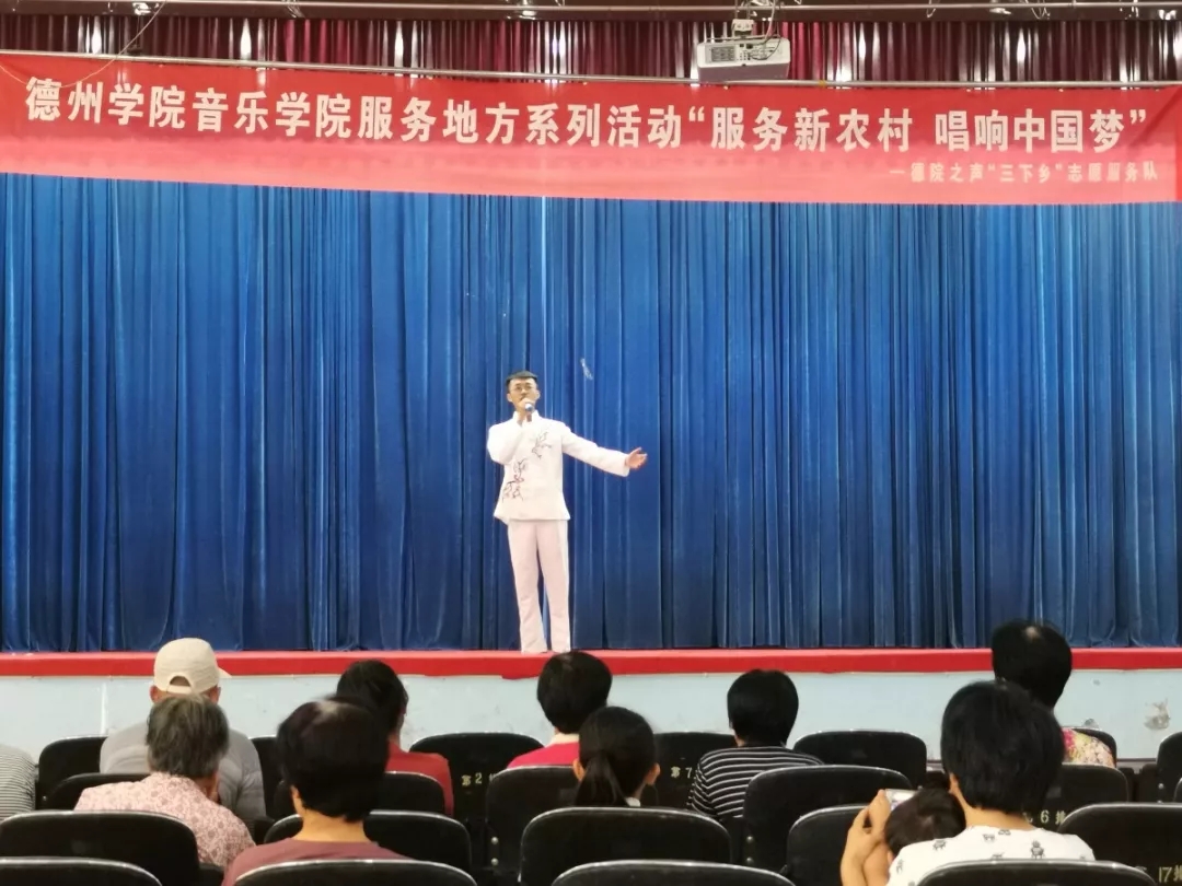 为深入学习贯彻习近平新时代中国特色社会主义思想,引领教育广大青年学生以实际行动投身乡村振兴战略实施,7月5日,音乐学院党总支副书记贺昱、音乐教学实践中心主任马锡骞、团总支书记史璇携“德院之声”青年志愿者服务团队先后到陵城区后王庄社区和芦坊社区开展“服务新农村“唱响中国梦”音乐学院2019年“三下乡”文艺演出活动,社区干部、老党员与群众近百余人到场观看。