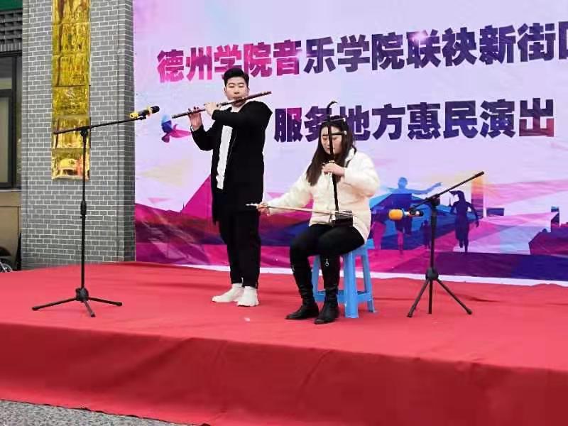 11月16日上午,德州学院音乐学院、德州新街口艺术团在新街口文化园联合举办“服务地方惠民演出”活动,音乐学院音乐表演专业学生与新街口艺术团的演员们联袂表演,为广大市民送上了一场视听盛宴。