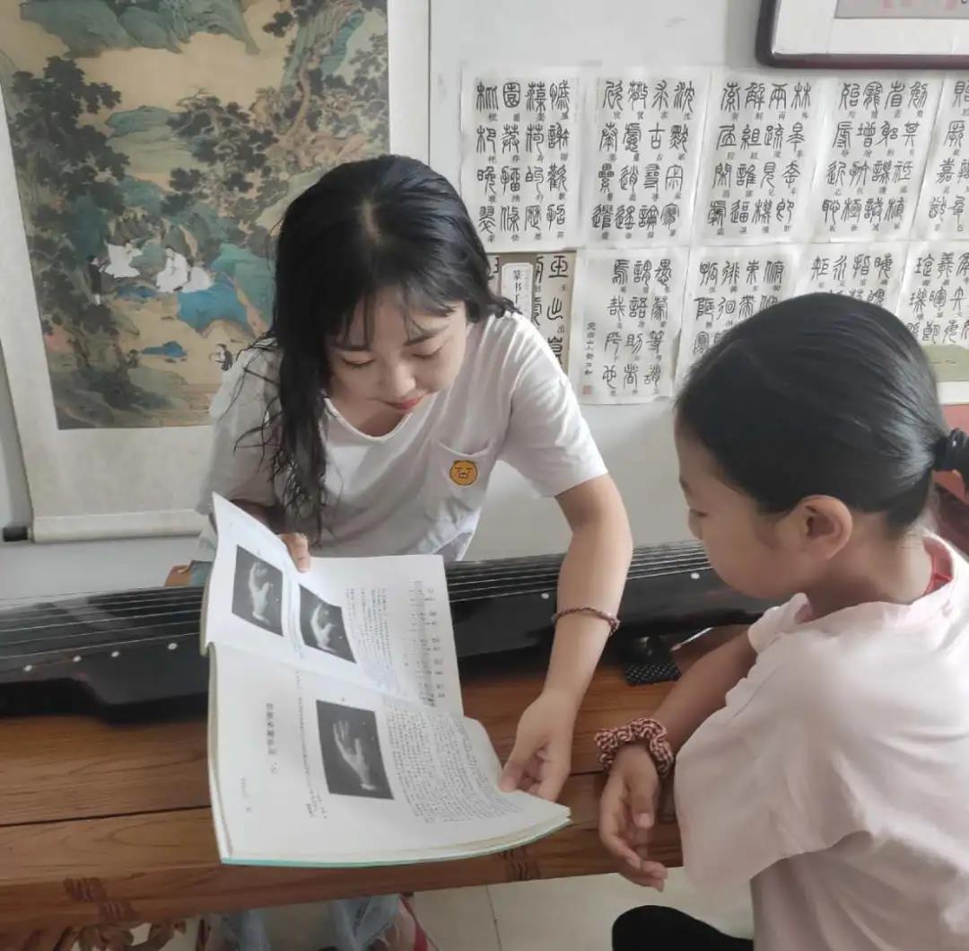 我是来自德州学院音乐学院18级音乐学三班的高璠,在暑假期间,带领学习古琴的小朋友了解古琴的历史文化及基本指法。第一次面对小朋友很紧张,但是她们学习很有耐心,给了我很大的鼓励,让我慢慢有了信心。