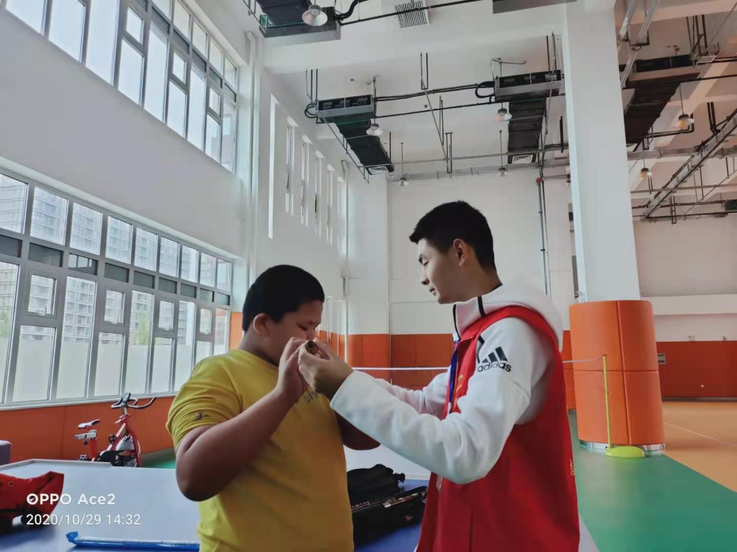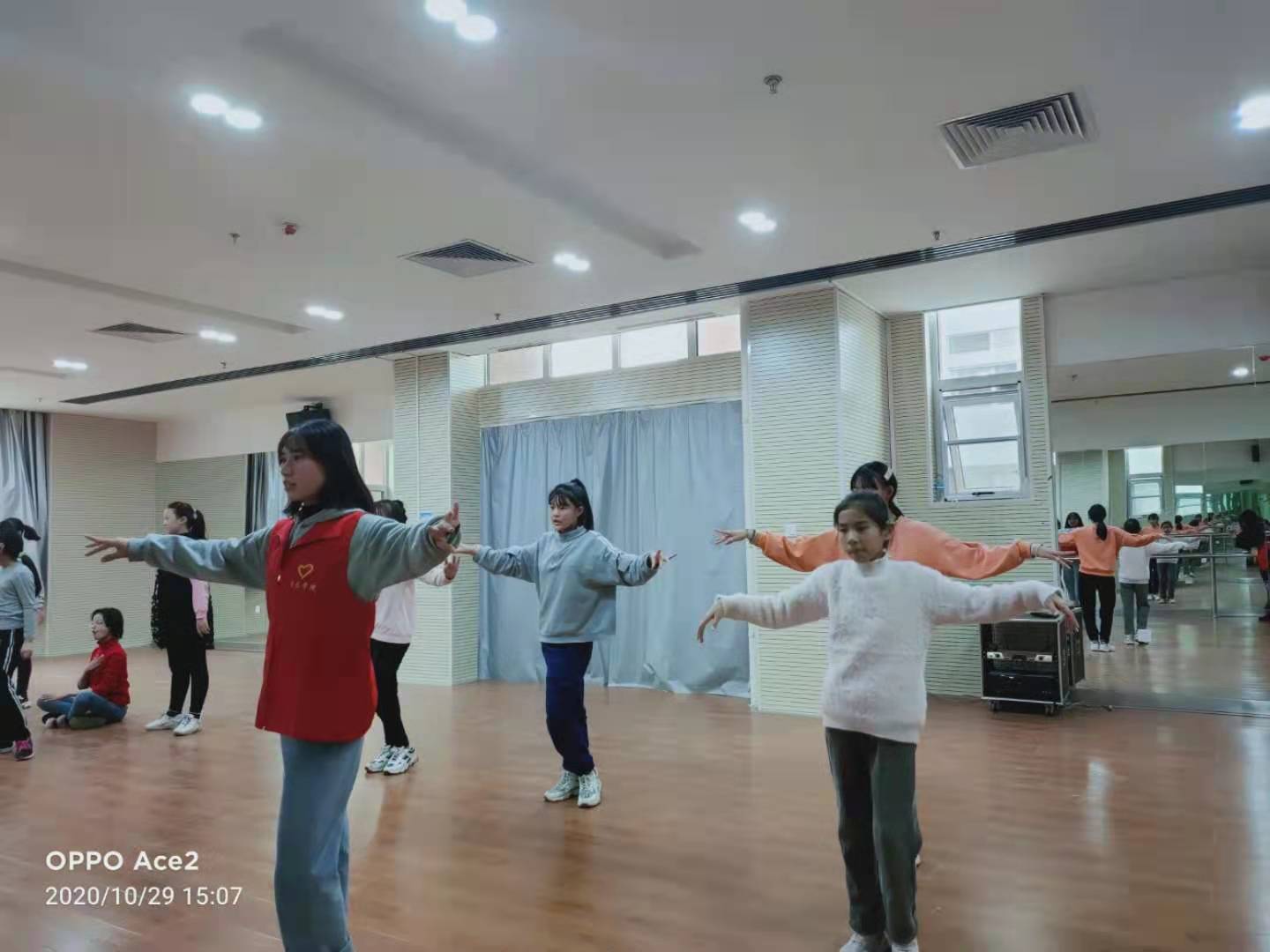 三位干事与老师联系后带着十四位志愿者在两点到达了德州市特殊教育学校。随后干事们分别给各自分管架子鼓,竹笛,钢琴,声乐和古筝的志愿者小组交代了注意事项,并开始了各班的教学。