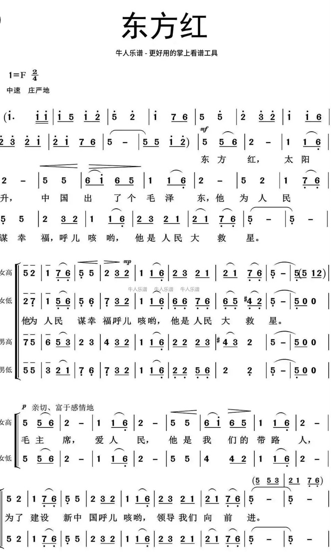 1949年10月1日,当毛泽东主席站在天安门城楼上,向全世界宣告“中华人民共和国中央人民政府成立了”的庄严时刻,奏响的背景音乐就是《东方红》。1957年,中央人民广播电台开始播放由编钟演奏的《东方红》。随着广播,该曲响彻在中国大地上传播。1970年,中国第一颗人造地球卫星“东方红一号”成功发射,该曲伴随着卫星升入太空。
