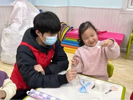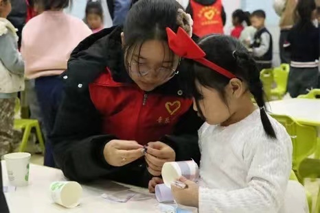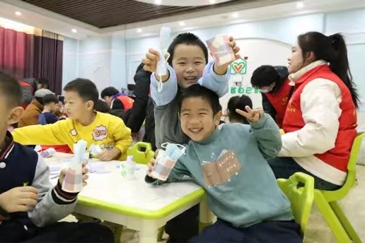 活动现场,志愿者们为小朋友演唱垃圾分类歌。将垃圾分类与文艺演出相融合,以教唱歌曲的形式宣传垃圾分类理念。在轻松愉悦的氛围中小朋友们对垃圾分类有了初步的了解。接着,志愿者们给小朋友介绍垃圾分类的具体知识和内容,用简单形象的语言让孩子们了解什么是垃圾分类、垃圾如何分类界定等。小朋友们在志愿者的带领下充分发挥自己的想象力,利用生活中常见的纸盒、废纸等创造出了一件件构思新颖、别具一格的手工作品。