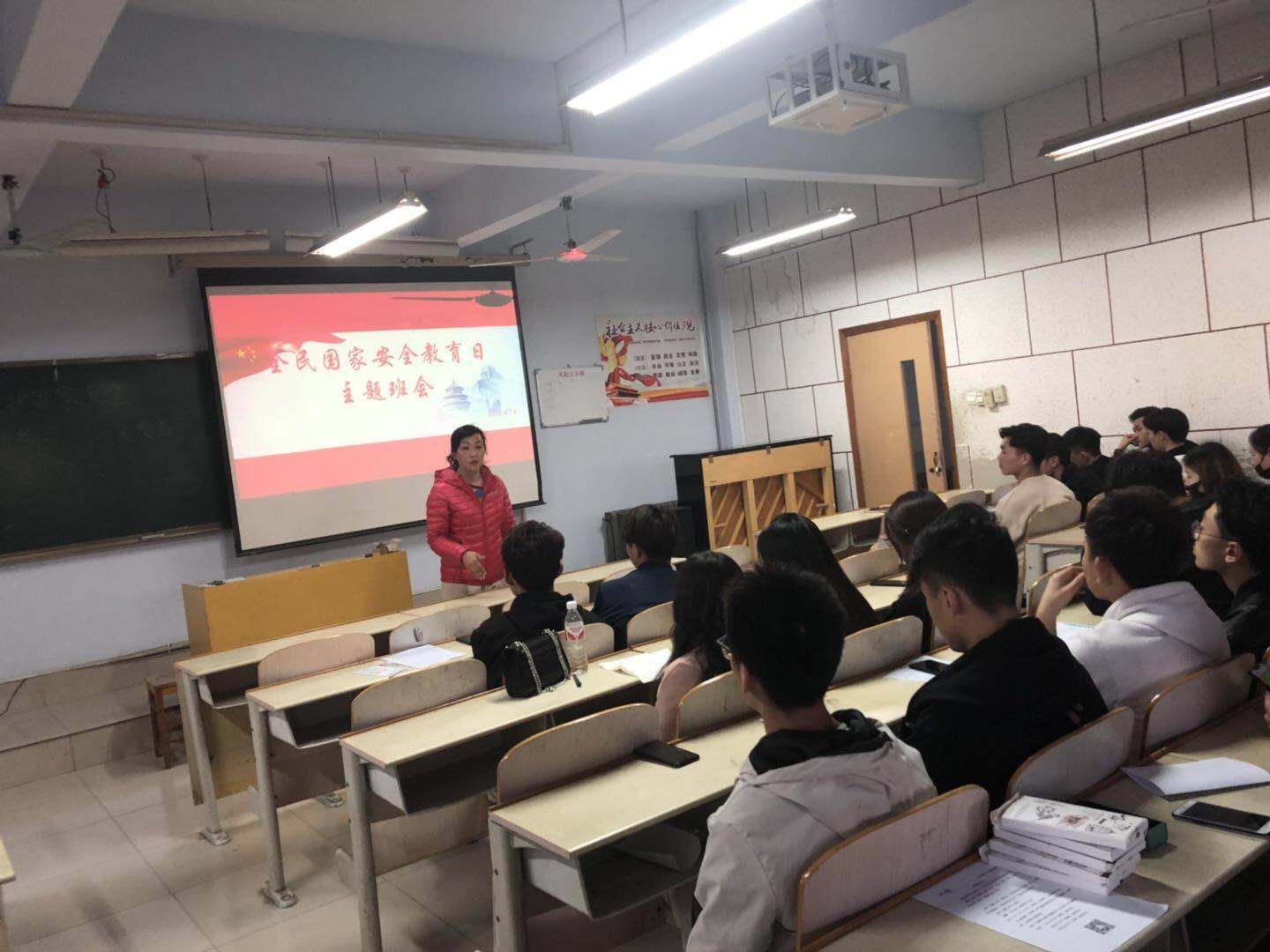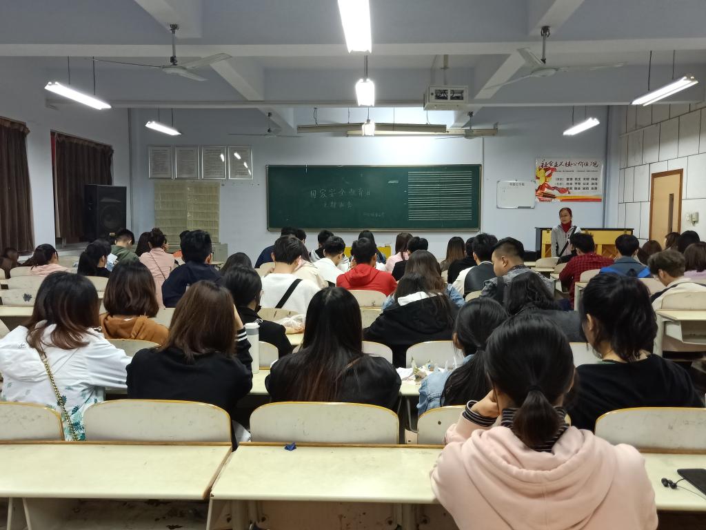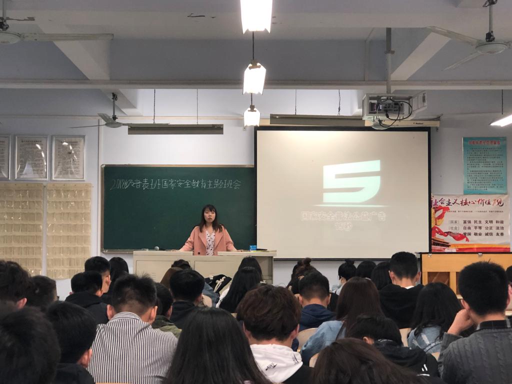 党总支副书记贺昱向班级学生讲解了415“全民国家安全教育日”的由来及国家安全的相关知识。2016级班主任乔云用生动的案例讲述了威胁国家安全的行为及后果。2017级班主任庞景梁结合大学生实际向学生们讲述了校园周边存在的一些安全隐患和校园安全常识;2017级班主任李琛针对国家安全的分类、《国家安全法》内容对班级学生进行答疑;2018级辅导员李曼宁则组织学生观看视频,加深学生们对危害国家安全行为的了解,唤醒学生们的爱国情怀;各班学生围绕国家安全展开热烈讨论。