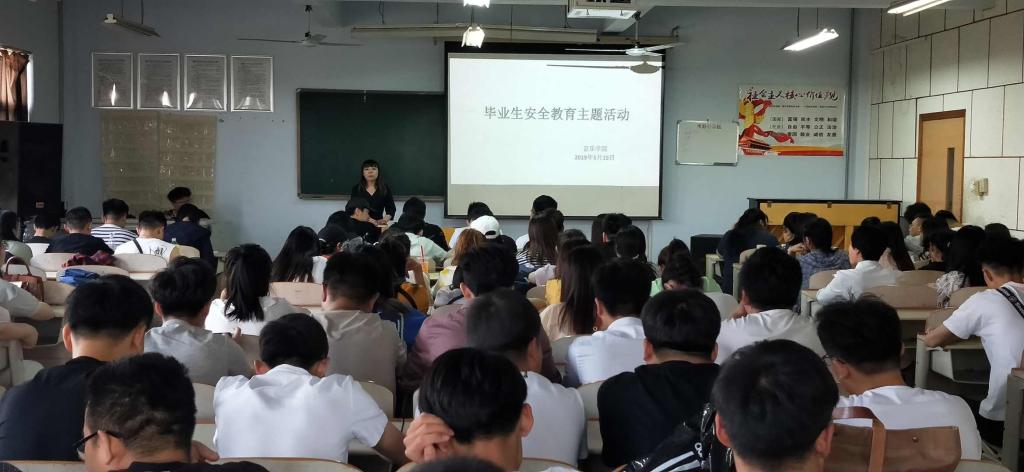 为配合做好2019届毕业生离校工作,营造安全有序的环境和氛围,确保同学们顺利毕业、文明离校,按照学校整体部署,结合自身毕业生工作实际,音乐学院于6月19号在3004教室开展了毕业生安全教育主题活动。本次活动由辅导员李曼宁主讲,2015级全体毕业生参加了本次活动。