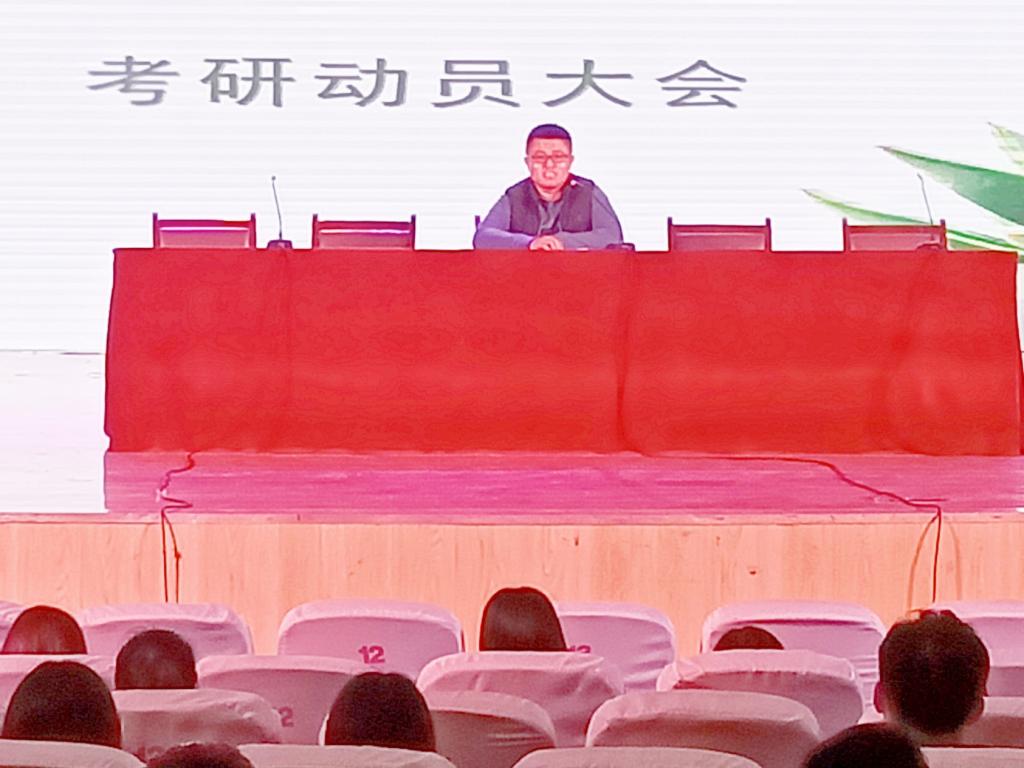 为了使同学们对考研有更加深入的了解,帮助同学们确立正确奋斗目标,增强考研的信心,提升考研竞争力,音乐学院于10月22日晚在南校音乐厅举办了考研动员大会,出席本次大会的有音乐学院副院长段文、音乐教学实践中心主任马锡骞、音乐表演系理论教研室主任白云、音乐教学实践中心教研室主任徐琦,以及济南大学就读研二的优秀校友刘蕴浩,音乐学院大一、大二、大三全体学生参与。