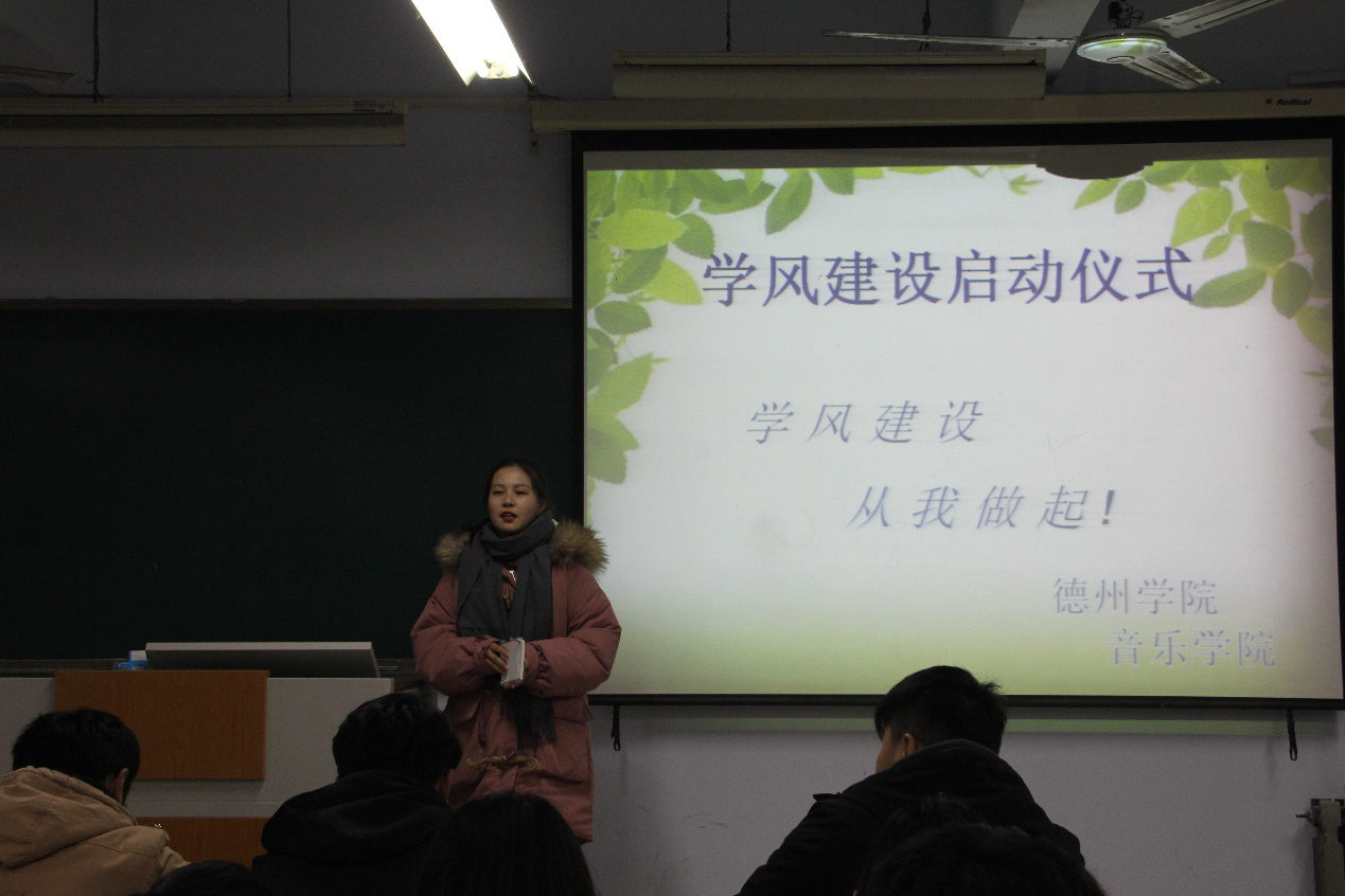 为激发学生们的学习热情、营造良好的学风氛围。12月9号晚,音乐学院于2004教室举行了“学风建设启动仪式”,音乐学院党总支副书记贺昱、团总支书记史璇、辅导员李曼宁及2019级全体同学参加此次活动。