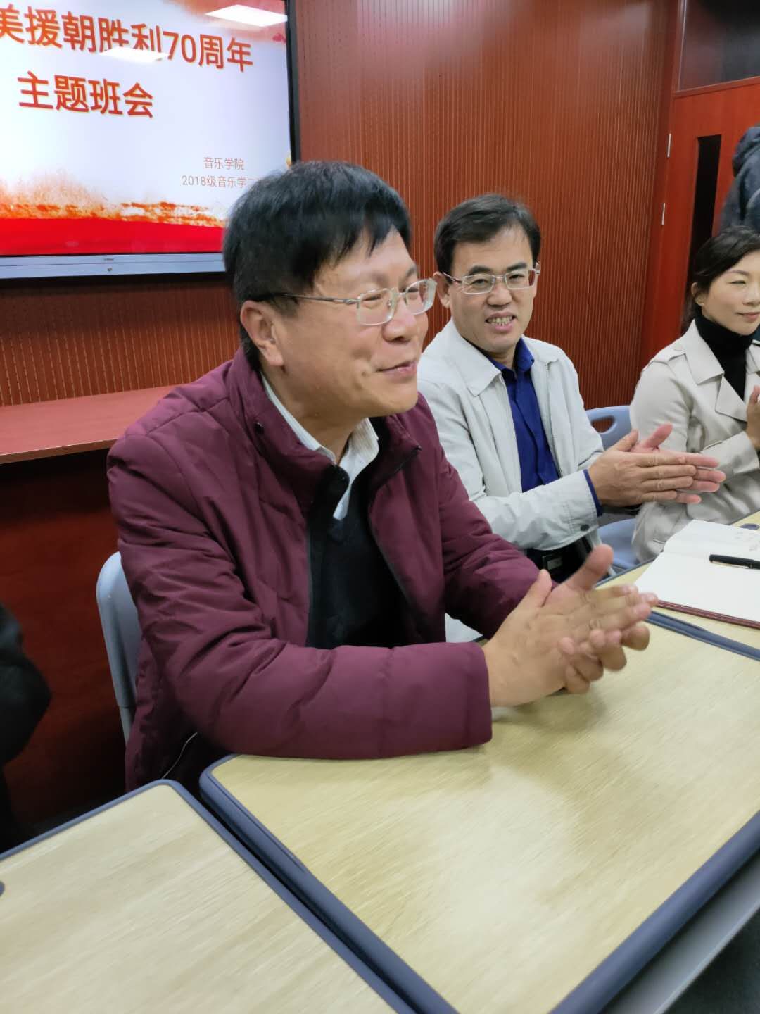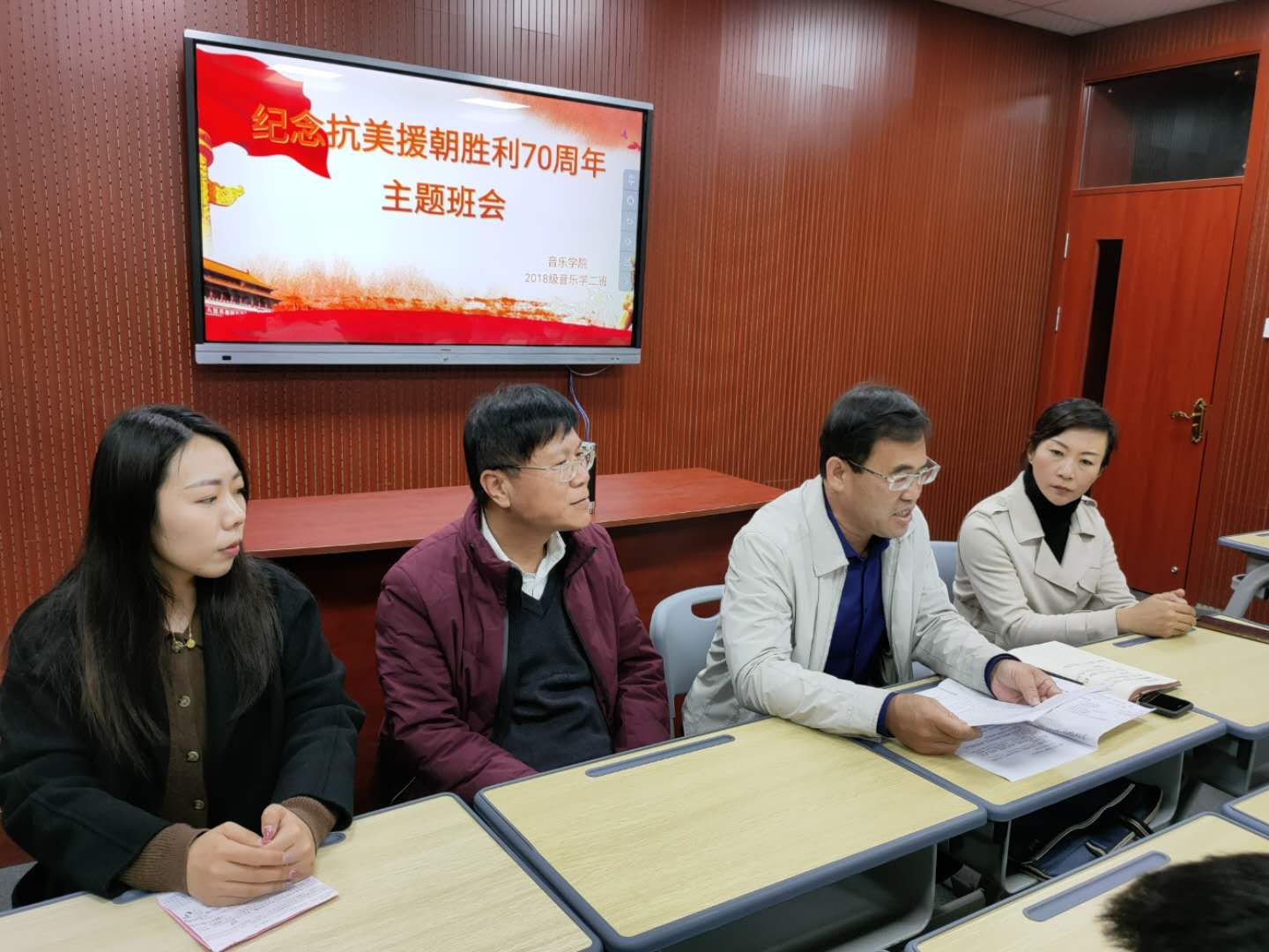 为推进建立健全领导干部常态化联系学生工作机制,加强学生思想政治教育,11月1日,基建处处长翟彦民深入音乐学院,参加指导了2018级音乐学二班“纪念抗美援朝70周年”主题班会。党总支书记刘志华,党总支副书记贺昱,2018级音乐学二班班主任李曼宁及全体学生参加了本次班会。