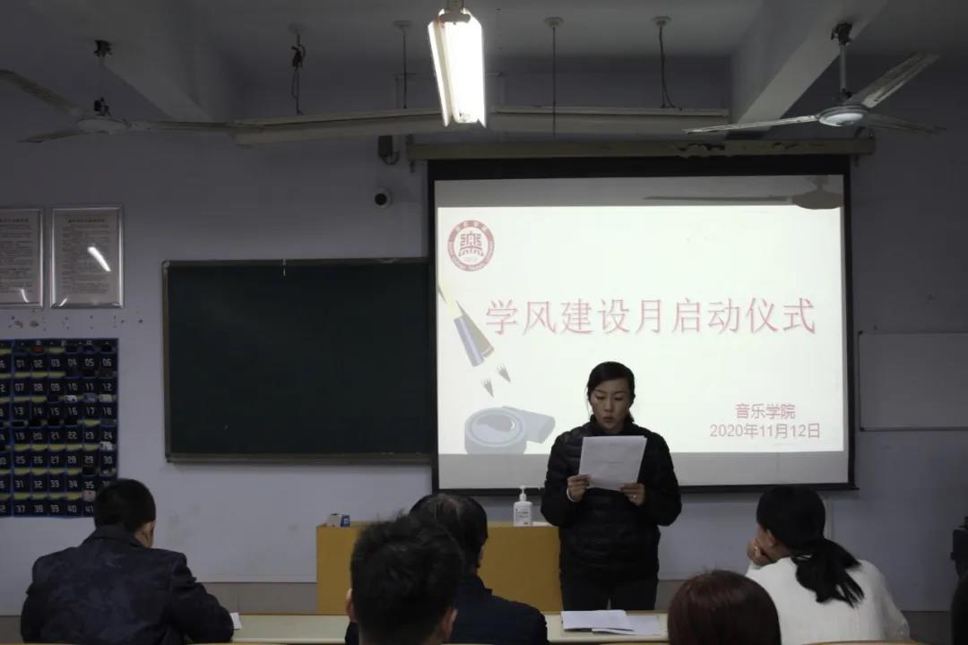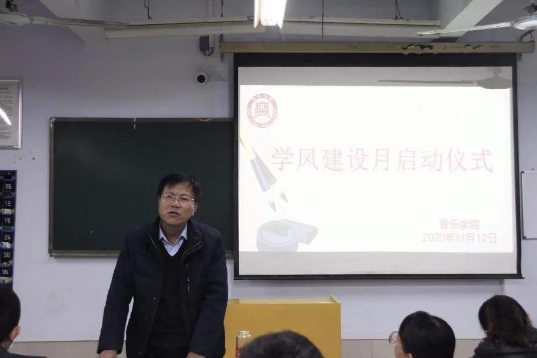 为进一步推进音乐学院学风建设,营造良好的学习氛围,帮助广大学生树立热爱学习、善于学习、坚持学习的观念,11月12日音乐学院在三楼合堂举行学风建设月启动仪式。音乐学院党总支书记刘志华、辅导员、班主任、全体学生干部及各年级学生代表参加仪式,党总支副书记贺昱主持。