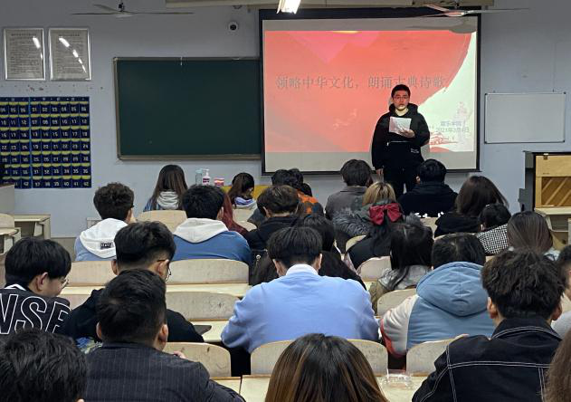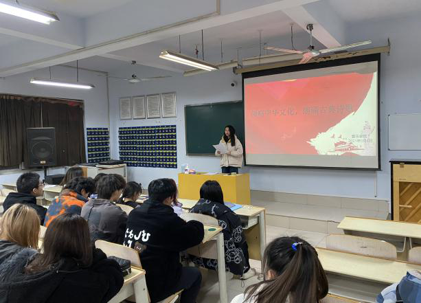 活动开始,由纪察部代表向同学们强调了此次活动的重要性以及本次活动的主要目的。带领大家诵读中华传统文化,诵读经典诗歌,给同学讲解古典诗歌。随后由2020级各班代表依次上台朗诵古典诗歌。