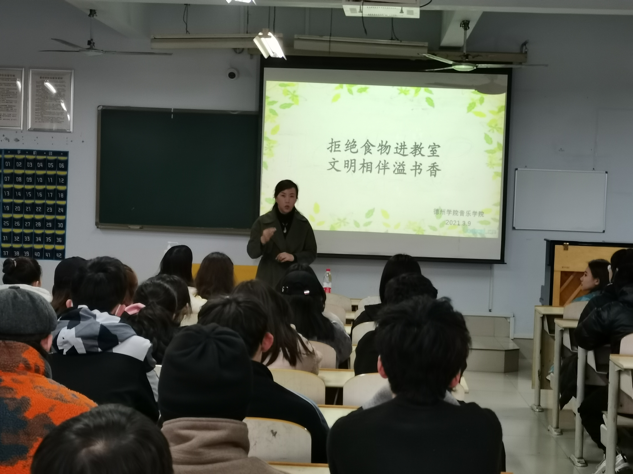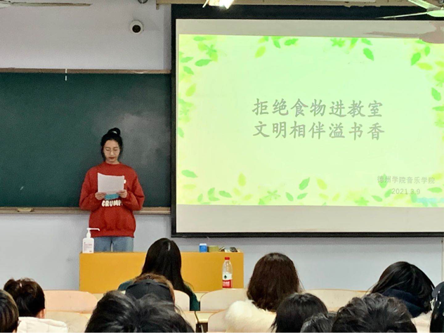 音乐学院举行“拒绝食物进教室,文明相伴溢书行”活动