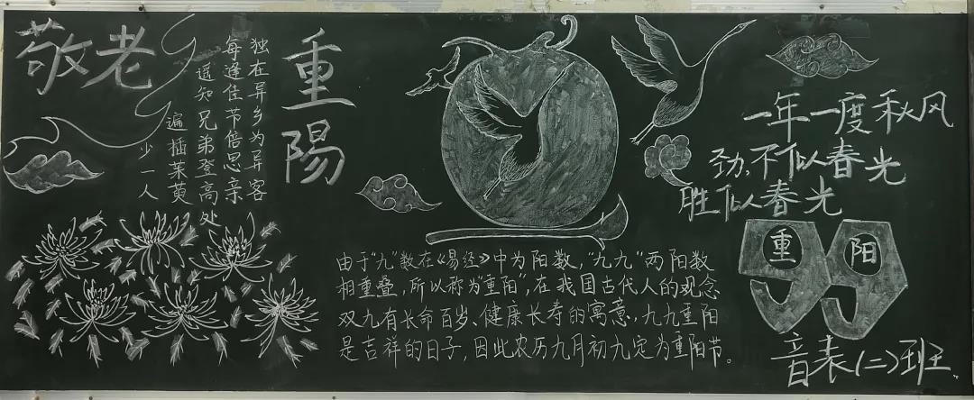 10月9日音乐学院以班级为单位开展了“九九重阳节,浓浓敬老情”主题黑板报活动。各班积极准备了黑板报内容,弘扬敬老爱老传统美德,提高了同学们投身于实践的热情,增加了同学们的获得感与参与感。活动结束后,从众多黑板报作品中选出了3版优秀作品。
