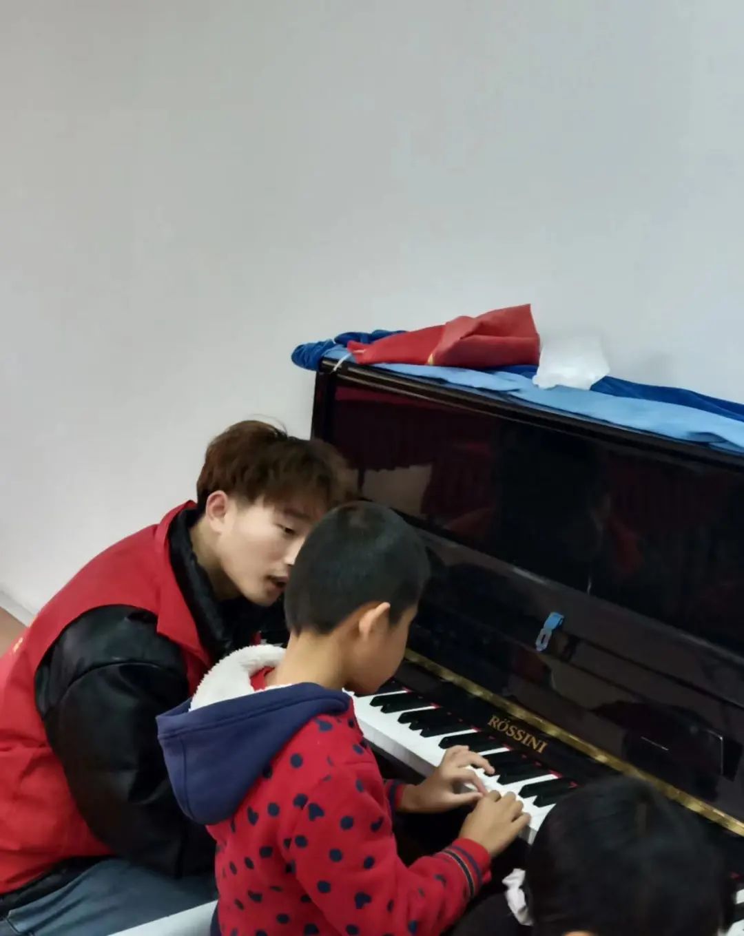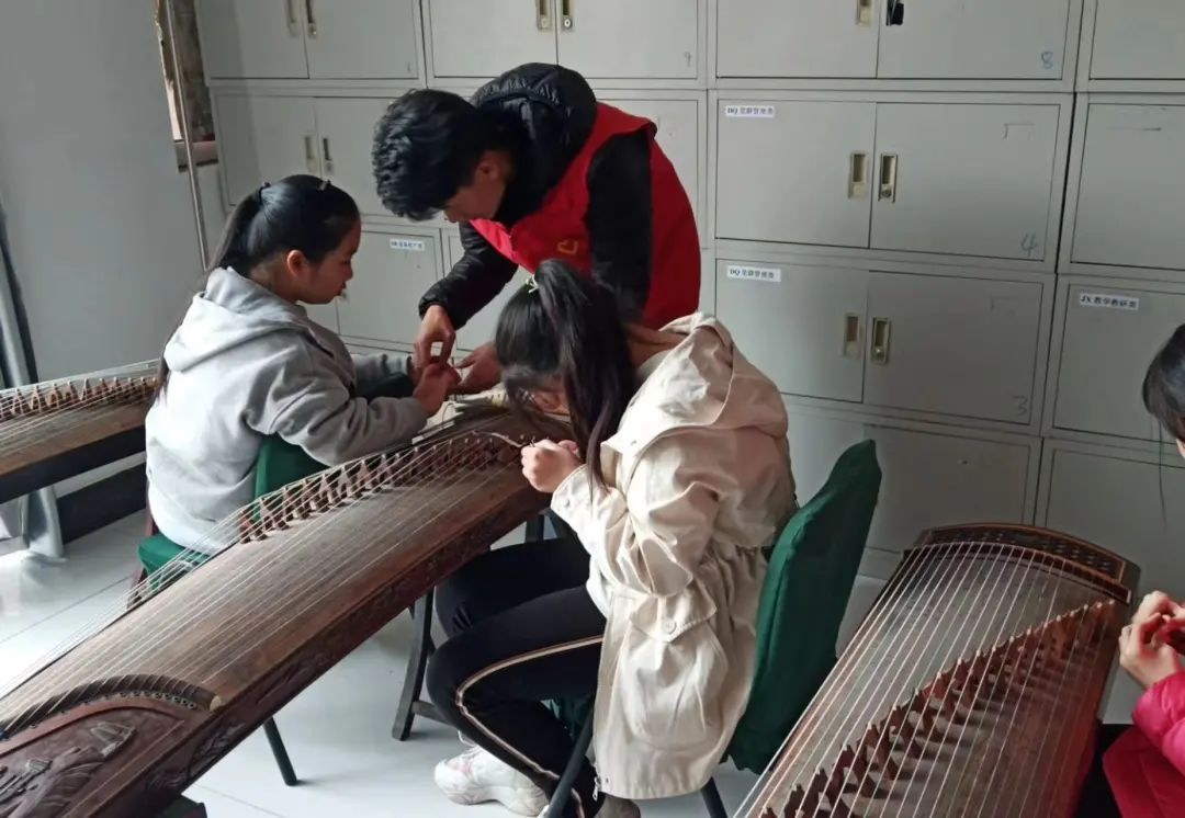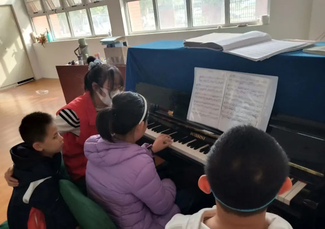 首先,志愿者们参观了校园,与老师们进行了沟通,了解了孩子们的情况。随后按照专业人数的分工开始教学古筝,架子鼓,舞蹈,钢琴等。在教学的过程中,每一位志愿者都发挥了创造性的思维,注重培养孩子们的学习兴趣,使每一个孩子在轻松愉悦的课堂氛围中掌握音乐知识,提高自主学习能力。课余之时,志愿者们还与孩子们进行了交流谈心。