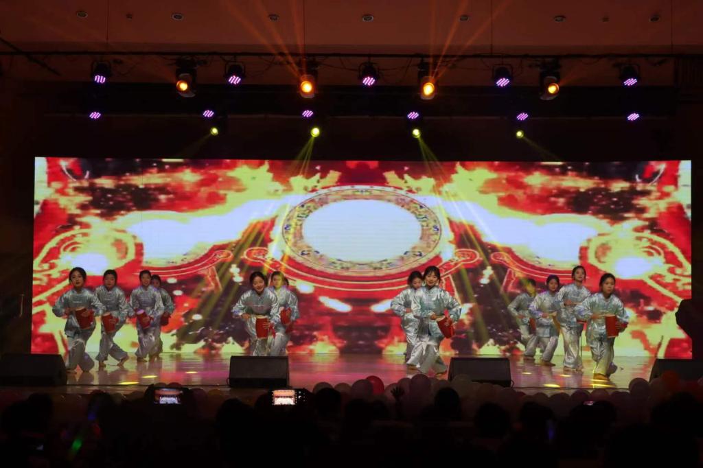 鼓乐团带来的节目《龙腾虎跃》乐曲情绪炽热,民族风格浓厚,表现了人民龙腾虎跃,奋勇前进的风貌,大家随鼓乐声开启了这欢腾之夜。