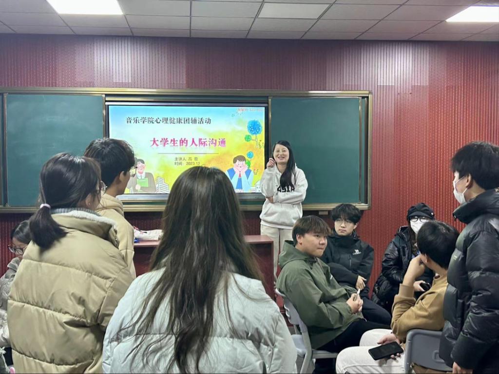 为了提高学生的人际交往能力,掌握人际沟通的技巧,12月8日音乐学院举办了“大学生的人际沟通”心理健康团辅活动,活动由学校心理健康中心高歌老师指导开展。