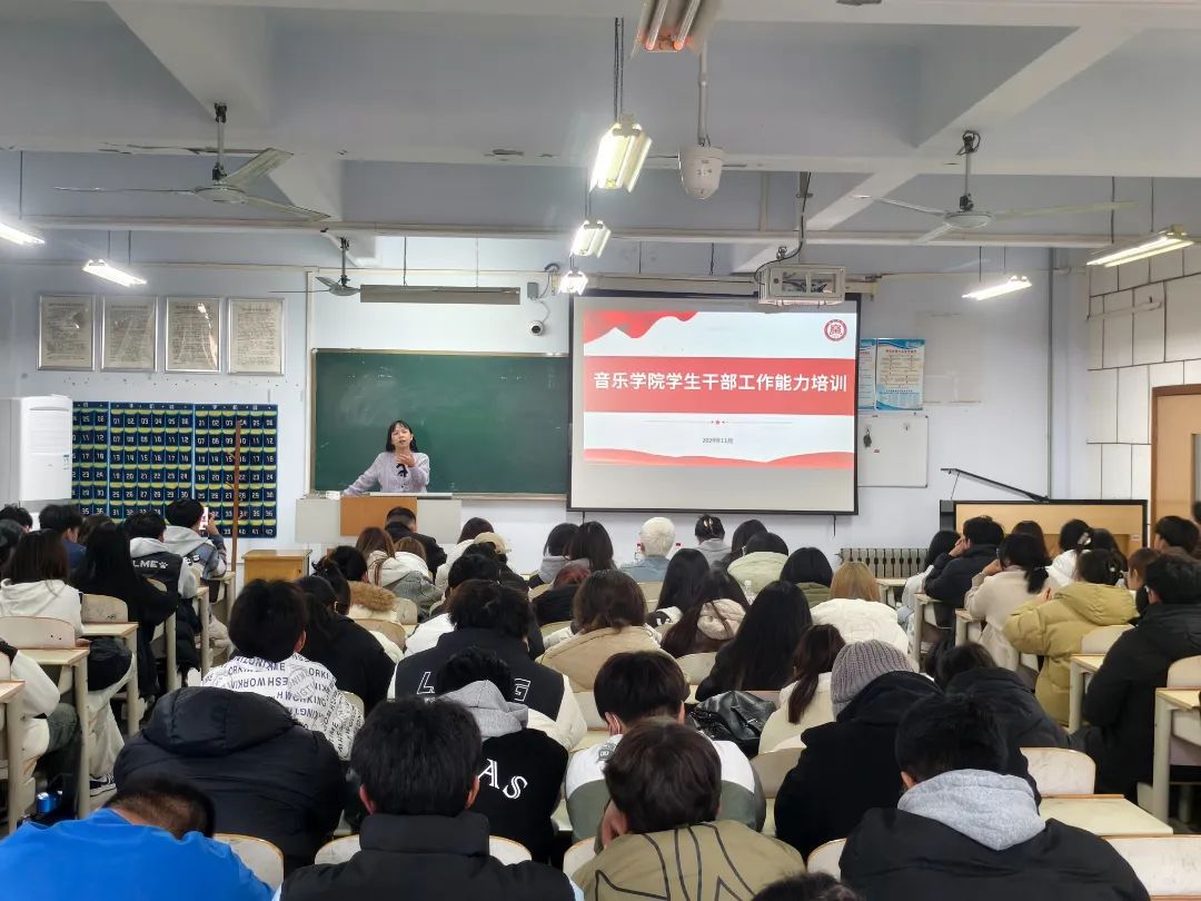 为进一步加强学生干部队伍建设,全面提升学生干部的综合素质与工作能力,11月19日下午,音乐学院在二楼合堂教室开展学生干部工作能力提升活动,学院团委书记、辅导员以及学生会成员参加培训。